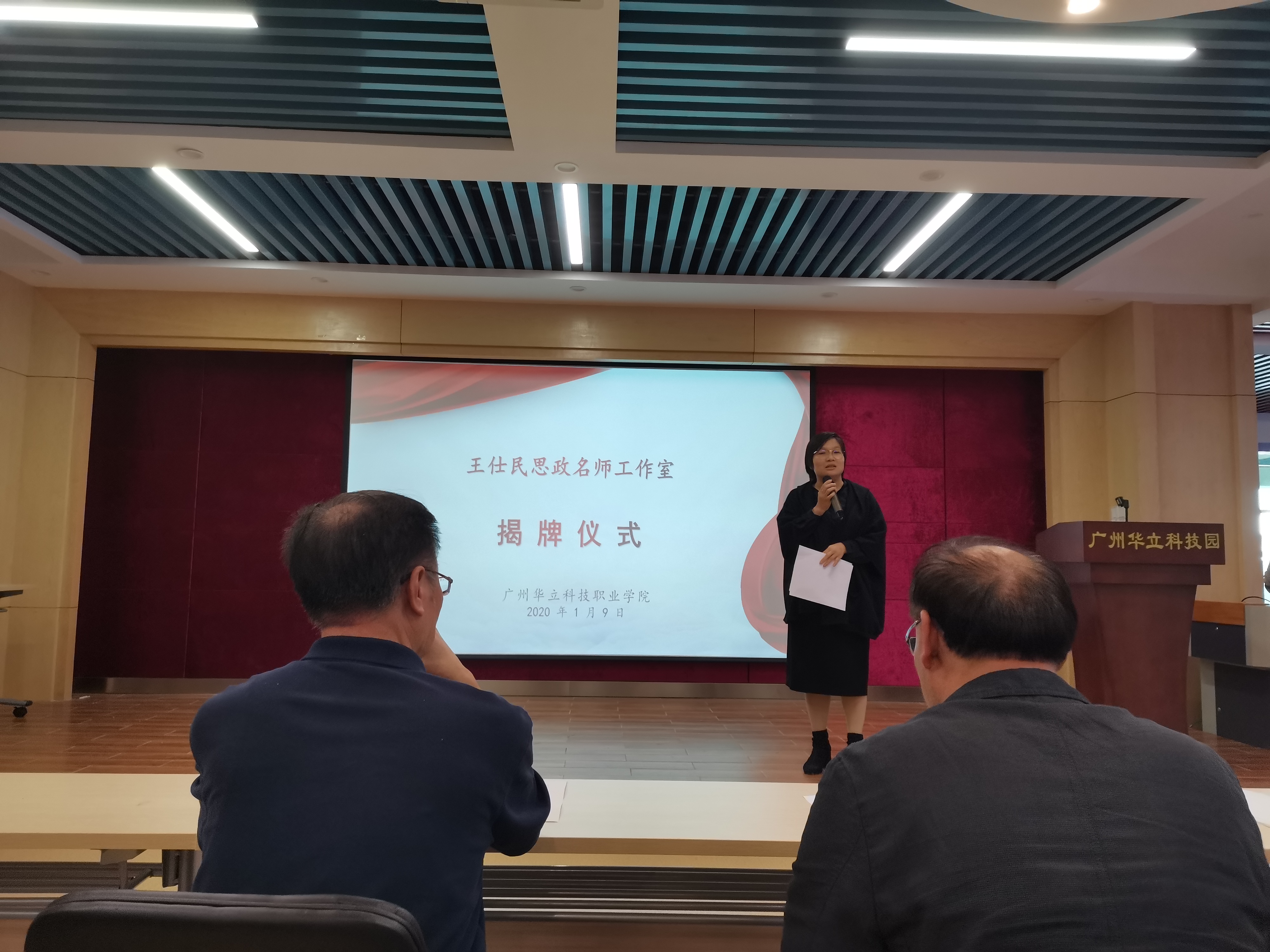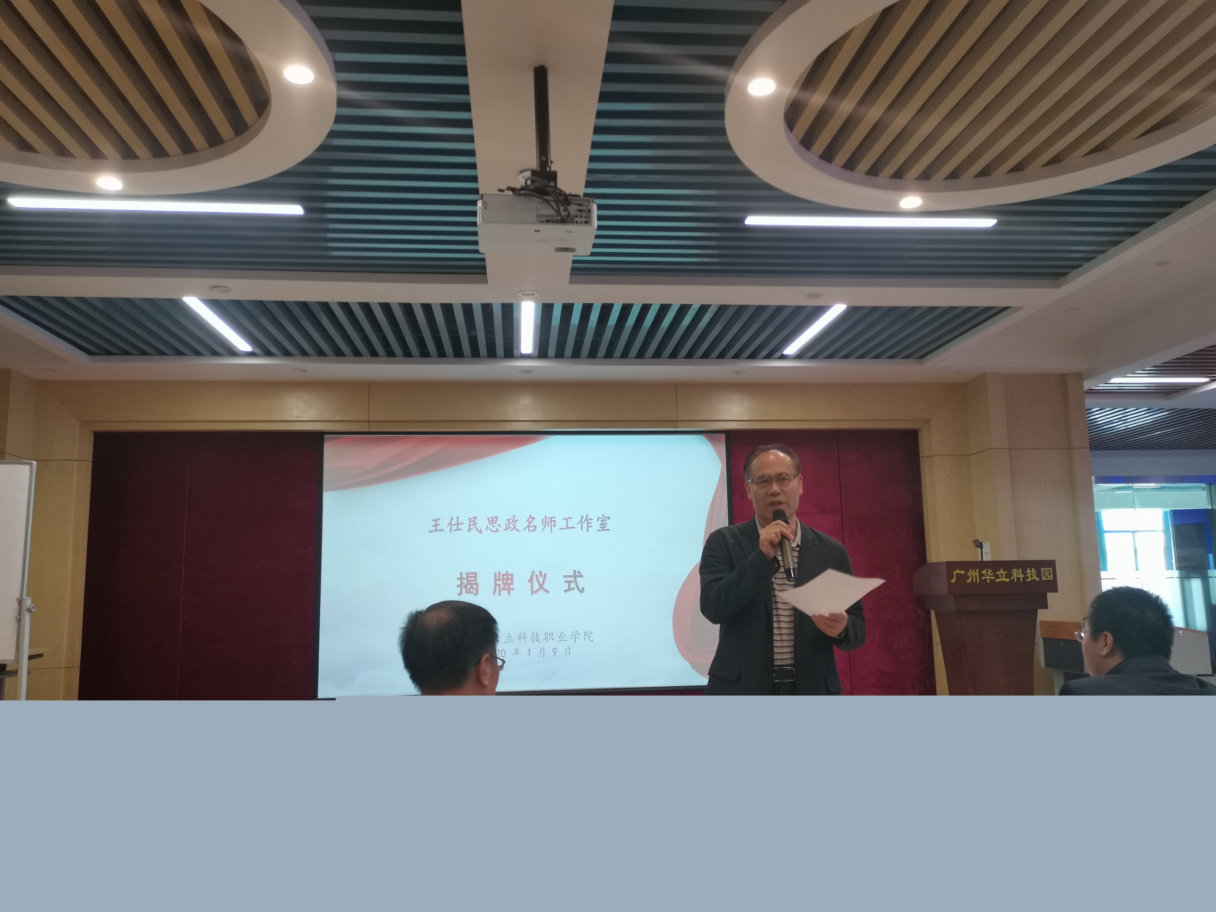 1月9日下午,廣州華立科技職業(yè)學(xué)院王仕民思政名師工作室授牌儀式在科技樓舉行。學(xué)校高度重視此次活動,校黨委書記林偉健、黨委副書記高堯來以及馬龍海、馬俊、易健民等學(xué)校領(lǐng)導(dǎo)出席揭牌儀式?;顒佑尚|h委委員、副校長馬俊主持。學(xué)校中層干部、黨務(wù)干部、全體思政教師、名師工作室領(lǐng)銜人及工作室成員參加此次活動。
