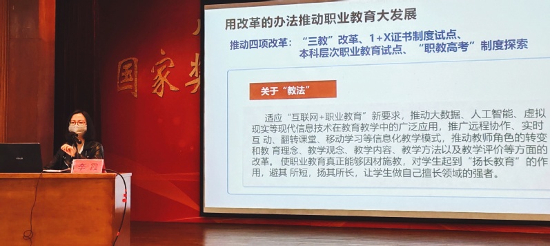廣東教育出版社李霞主任做了《用改革的辦法推動職業(yè)教育大發(fā)展》主題講座,重點講解了什么樣的教材是“好”教材,詳細闡述了國家最新“十三五”職業(yè)教育國家規(guī)劃教材編寫的相關要求等。