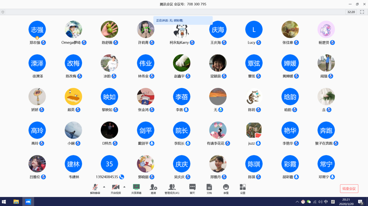 3月20日晚8點(diǎn),藝術(shù)與傳媒學(xué)院通過(guò)“騰訊會(huì)議”平臺(tái),首次召開全院教師工作網(wǎng)絡(luò)視聽大會(huì),傳達(dá)教務(wù)處疫情防控期間網(wǎng)絡(luò)教學(xué)精神,總結(jié)開學(xué)以來(lái)線上教學(xué)開展情況,同時(shí),對(duì)校外實(shí)習(xí)、學(xué)管和行政人事等重點(diǎn)工作,進(jìn)行部署安排。學(xué)院李于昆院長(zhǎng)、戴劍平副院長(zhǎng)、各條線主任、專業(yè)教師、輔導(dǎo)員共45人參加。