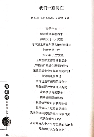 學(xué)生自發(fā)地參與社區(qū)、街道的抗擊疫情志愿活動(dòng)。他們戴著口罩,手中的筆,溫度測(cè)量計(jì)就是他們戰(zhàn)斗的工具,耐心地對(duì)過(guò)往的人員登記信息、測(cè)量體溫。他們用自己的行動(dòng)服務(wù)當(dāng)?shù)?,在基層防疫一線踐行大學(xué)生的責(zé)任與擔(dān)當(dāng)。