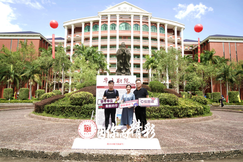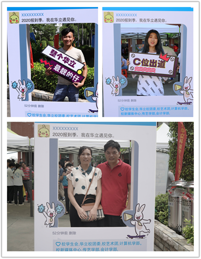 絡(luò)繹不絕的新生和家長(zhǎng)紛紛在“華立職院“的大噴前駐足,與相框KT板合照,記錄下這一特殊的時(shí)刻。同學(xué)們臉上洋溢的笑容,是對(duì)大學(xué)三年生活美好的向往。家長(zhǎng)臉上的笑容,則充滿(mǎn)了對(duì)孩子美好未來(lái)的憧憬。