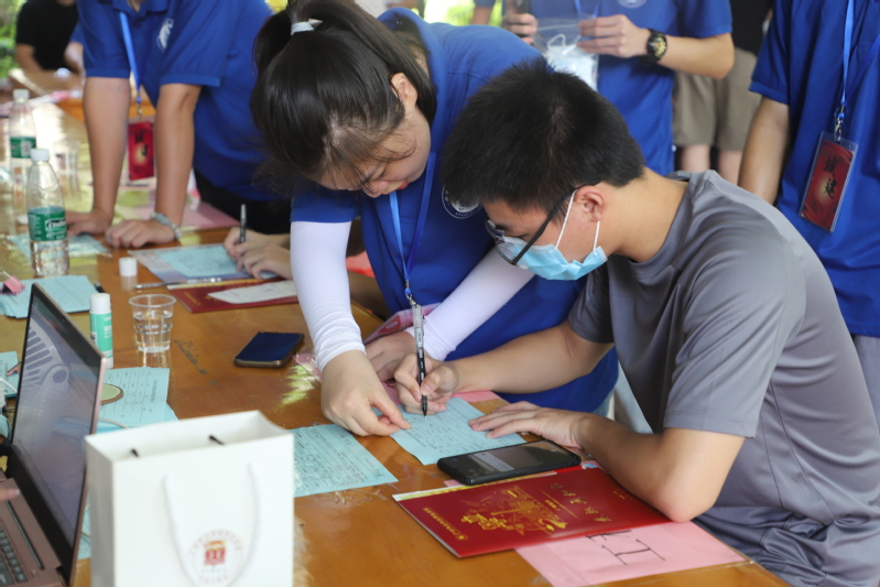 迎新現(xiàn)場(chǎng),穿著“紅”“藍(lán)”“白”等顏色院服的學(xué)長(zhǎng)學(xué)姐最為忙碌,這些志愿者為新生及家長(zhǎng)提供最全面的引導(dǎo)服務(wù)。幫新生拎行李,引導(dǎo)新生根據(jù)報(bào)到流程完成入學(xué)手續(xù),讓新生一進(jìn)入校門(mén)便感受到來(lái)自師兄師姐的關(guān)懷和溫暖。熱情的笑臉,關(guān)切的話(huà)語(yǔ),迎新志愿者成為新生入學(xué)的第一個(gè)“引路人”。在各二級(jí)學(xué)院和每棟宿舍樓下,都有志愿者發(fā)放校園卡,積極回答新生的問(wèn)題,讓新生對(duì)學(xué)校和專(zhuān)業(yè)學(xué)習(xí)有了一定了解。