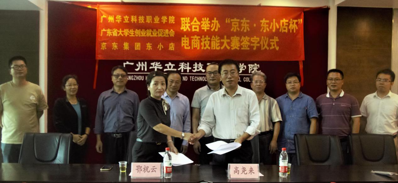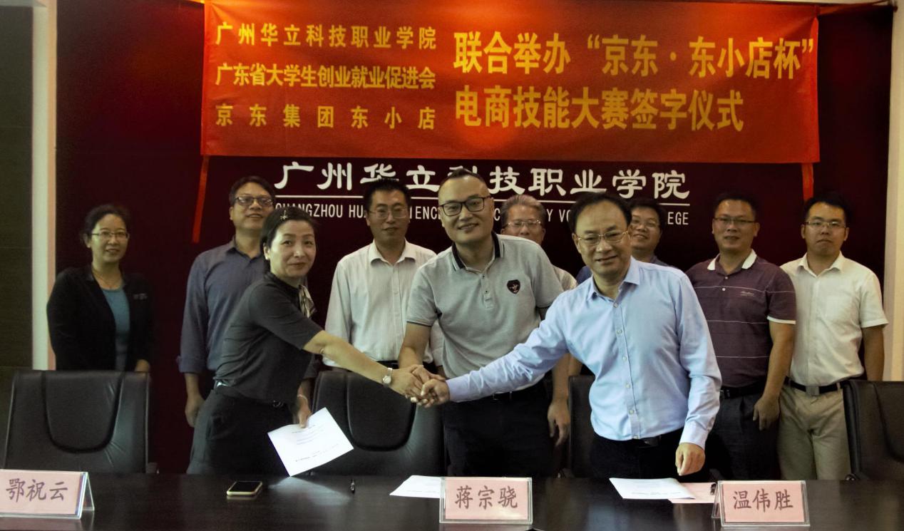 隨后,在熱烈的氣氛中,我校與京東集團(tuán)東小店簽訂了《大學(xué)生校外實(shí)踐教學(xué)基地協(xié)議書(shū)》,與廣東省大學(xué)生創(chuàng)業(yè)就業(yè)促進(jìn)會(huì)、京東集團(tuán)東小店簽訂了政校企三方聯(lián)合舉辦“京東·東小店杯”電商技能大賽協(xié)議書(shū)。