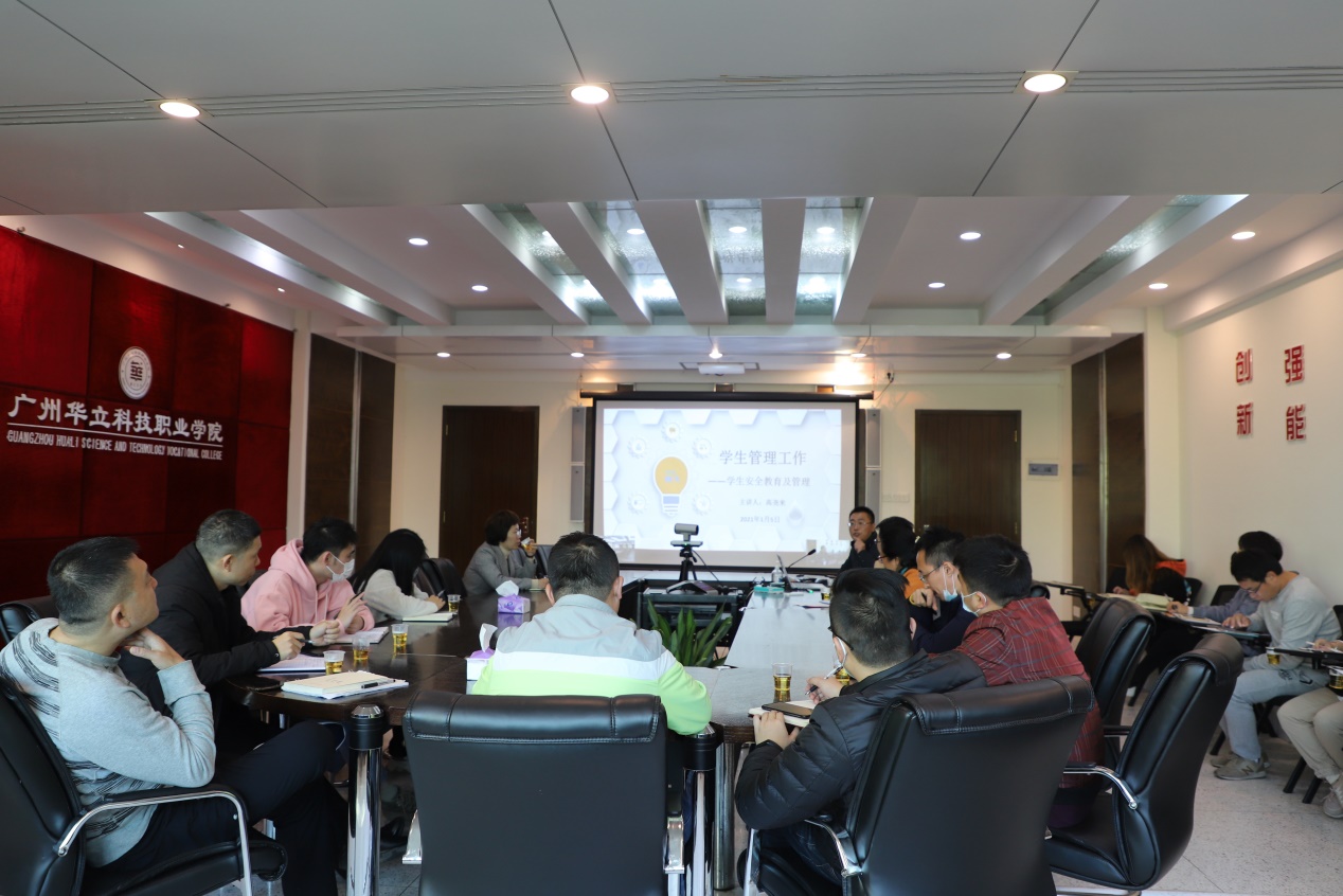 會上,高堯來副校長首先強調(diào)了學(xué)校必須將安全教育工作制度化,常態(tài)化;接著從學(xué)生管理實際工作出發(fā),結(jié)合當(dāng)下疫情發(fā)展的趨勢,對照學(xué)校學(xué)生安全教育與管理的規(guī)定,分享了他對學(xué)生安全教育與管理的看法,分別從學(xué)生信息安全、學(xué)生假期安全、學(xué)生住宿安全管理等方面作了細致探討;最后,他強調(diào)了學(xué)生安全教育與管理不僅是學(xué)生管理隊伍的責(zé)任,同時也是全體管理干部必須肩負的責(zé)任,全體管理干部必須團結(jié)一致,以飽滿的工作熱情、奮發(fā)有為的態(tài)度,共同做好學(xué)生安全教育與管理工作!