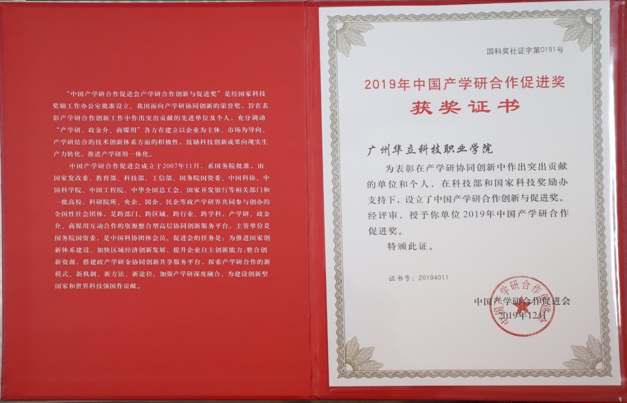 2018年和2019年我校連續(xù)兩次獲得國(guó)家級(jí)協(xié)會(huì)產(chǎn)學(xué)研合作最高榮譽(yù)獎(jiǎng)---中國(guó)產(chǎn)學(xué)研合作促進(jìn)獎(jiǎng),與華南農(nóng)業(yè)大學(xué),華南理工大學(xué)等知名高校同獲殊榮。