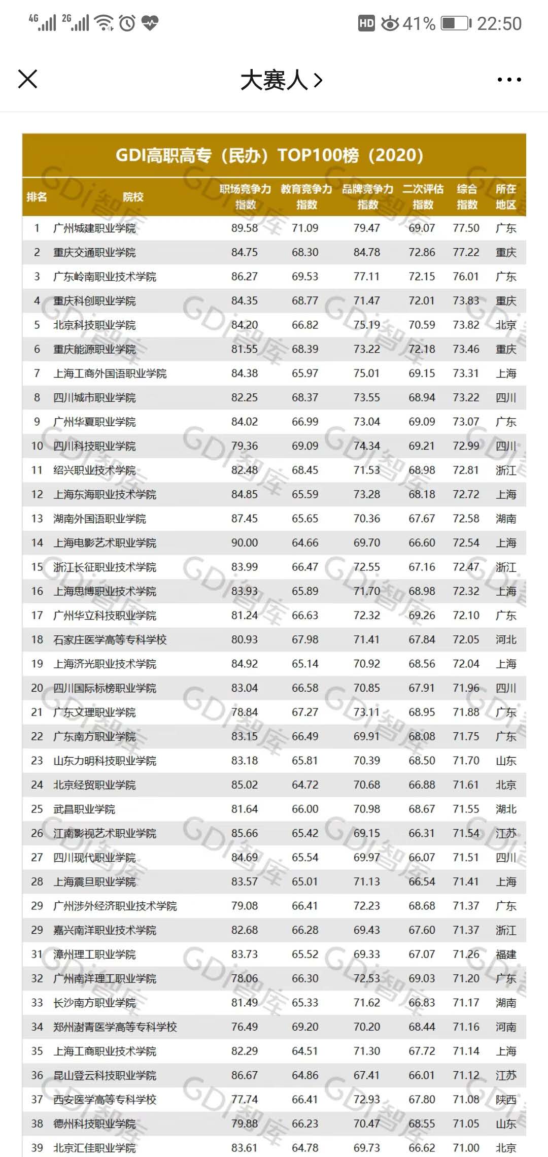 在廣州日?qǐng)?bào)數(shù)據(jù)和數(shù)字化研究院(GDI智庫(kù))發(fā)布的2020年全國(guó)民辦高職排行榜中,我校位列全國(guó)第17名,省內(nèi)同類院校第4名。凸顯了學(xué)校的品牌影響力,為學(xué)校升本規(guī)劃和百年名校目標(biāo)增添了重要的數(shù)據(jù)指標(biāo)。