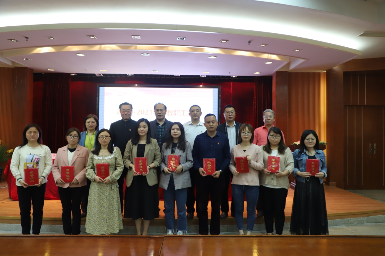 最后,頒發(fā)2020-2021學(xué)年教學(xué)能力大賽獎(jiǎng)項(xiàng),校領(lǐng)導(dǎo)和獲獎(jiǎng)老師合影留念。