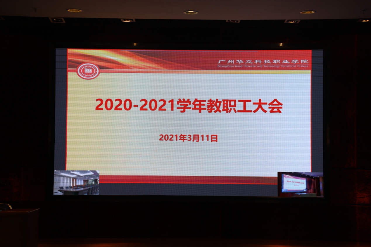 春風(fēng)徐來,萬象更新。充滿希望的新學(xué)期開學(xué)了!3月11日下午,全校教職工大會(huì)在一號(hào)報(bào)告廳隆重舉行。廣州華立投資有限公司葉雅明總經(jīng)理、校領(lǐng)導(dǎo)和全體教職工參加了會(huì)議;云浮校區(qū)以視頻會(huì)議形式參會(huì)。大會(huì)由高堯來副校長主持。