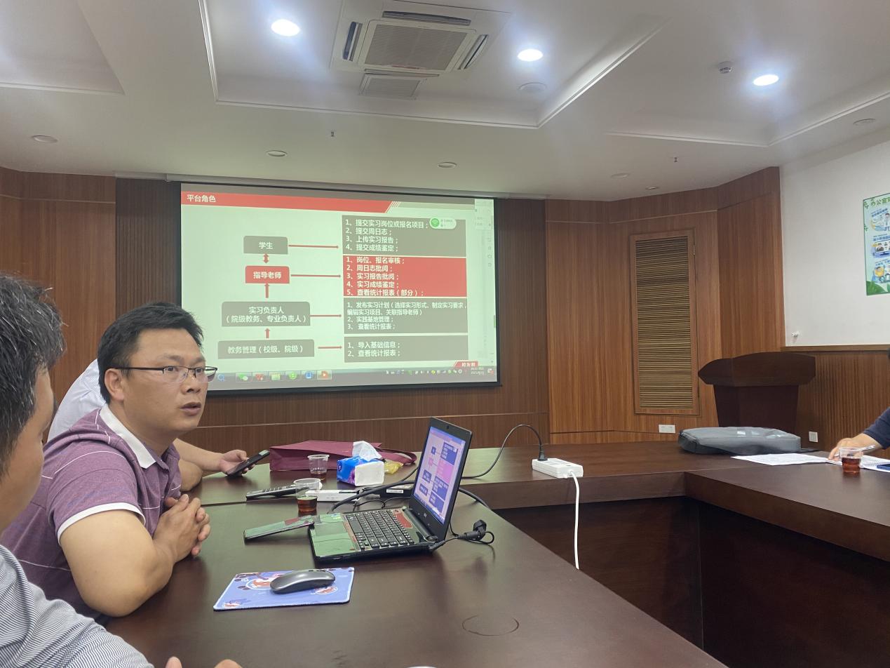 校外教學(xué)辦韋建林主任介紹了我校現(xiàn)行使用的“校友邦”實(shí)習(xí)平臺操作系統(tǒng),并從實(shí)習(xí)計(jì)劃的制定、實(shí)習(xí)崗位報(bào)名審核、周月志批閱、實(shí)習(xí)報(bào)告批閱、實(shí)習(xí)成績鑒定等方面作了詳細(xì)的操作說明。