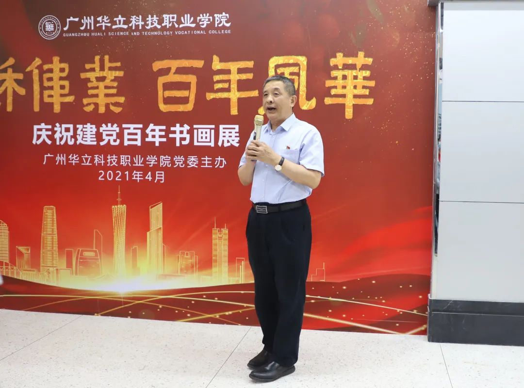 接著,黨委副書記、校長劉莊教授宣布廣州華立科技職業(yè)學(xué)院慶祝建黨百年書畫展開幕,學(xué)生書法比賽開始。