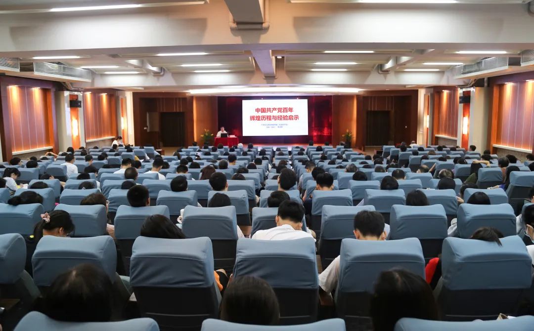 今年是中國(guó)共產(chǎn)黨成立100周年,也是“十四五”開局之年。為深入學(xué)習(xí)貫徹習(xí)近平總書記在黨史學(xué)習(xí)教育動(dòng)員大會(huì)上的重要講話精神,根據(jù)省委教育工委《關(guān)于全省教育系統(tǒng)開展黨史學(xué)習(xí)教育的工作方案》要求,5月18日,廣東省人民政府參事室(文史研究館)黨組書記、主任(館長(zhǎng)),中國(guó)中共黨史學(xué)會(huì)國(guó)共關(guān)系研究專業(yè)委員會(huì)副會(huì)長(zhǎng)、中國(guó)中共黨史人物研究會(huì)常務(wù)理事、中國(guó)中共文獻(xiàn)研究會(huì)理事楊漢卿同志應(yīng)邀到我校開展《中國(guó)共產(chǎn)黨百年輝煌歷程與經(jīng)驗(yàn)啟示》專題講座,我校黨委書記林偉健教授、學(xué)校班子成員、師生黨員代表、入黨積極分子代表300多人參加了此次活動(dòng),會(huì)議由我校黨委書記林偉健主持。