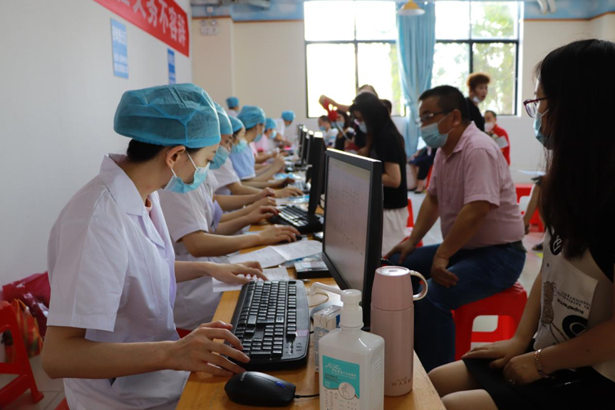 醫(yī)務(wù)人員在為師生員工登記接種信息