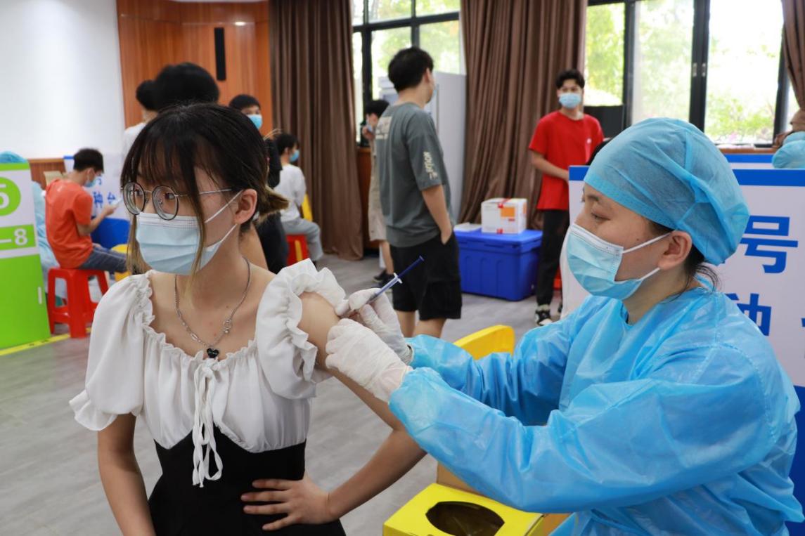 醫(yī)務(wù)人員為學(xué)生接種新冠疫苗
