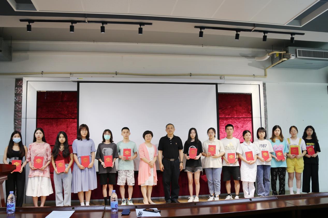 在激動人心的頒獎環(huán)節(jié),劉杰館長公布獲獎名單,劉莊校長和王洪艷校長助理為50多名獲獎師生頒發(fā)了榮譽證書,并與大家合影留念。