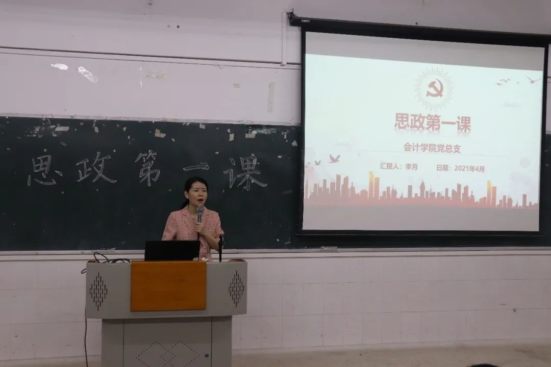 為了提高大學生的思想覺悟,增強同學們的責任感和使命感,會計學院黨總支于2021年4月20日晚上在圖書館201課室開展了思政第一課。思政第一課由會計學院第一黨支部書記李月同志主講。會計學院黨總支副書記兼第二黨支部書記陳輝同志、會計學院輔導員劉嘉楣同志、會計學院黨建小組成員、預備黨員、入黨積極分子聆聽了思政第一課。