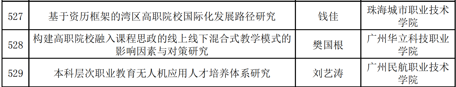 根據(jù)《廣東省教育科學(xué)規(guī)劃領(lǐng)導(dǎo)小組辦公室關(guān)于開展2021年度教育科學(xué)規(guī)劃課題(高等教育專項)申報通知》文件要求,我校組織了項目的評審工作。我校計算機與信息工程學(xué)院教師樊國根申報課題《構(gòu)建高職院校融入課程思政的線上線下混合式教學(xué)模式的影響因素與對策研究》獲準(zhǔn)立項。