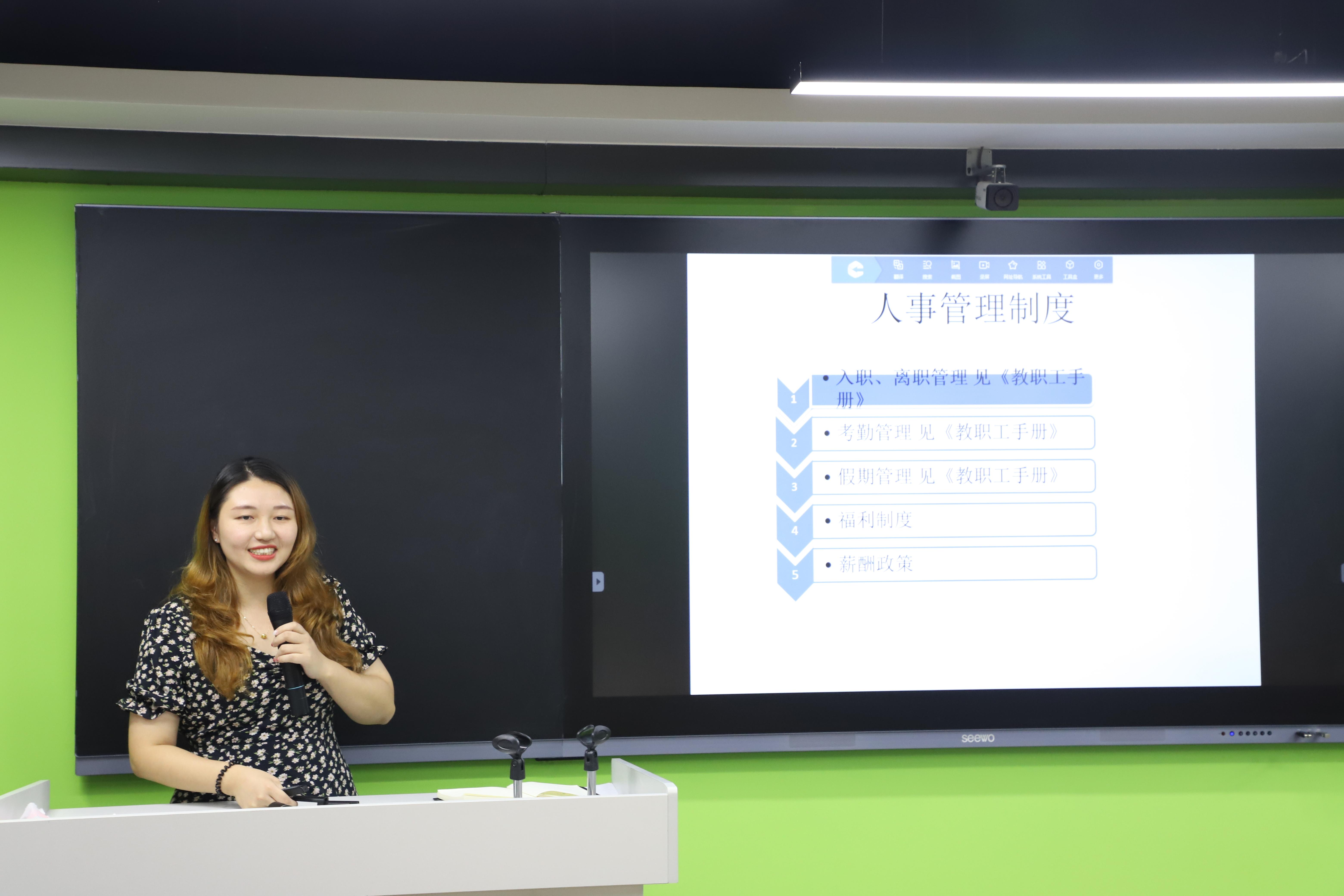 接著,校辦主任朱少先對學(xué)校的基本情況作了一個(gè)全面簡介,包括學(xué)校的發(fā)展簡史、職能部門、二級學(xué)院、學(xué)校章程等,重點(diǎn)介紹了學(xué)校的辦學(xué)理念和發(fā)展目標(biāo),希望新入職教師了解華立文化,盡快融入華立大家庭。