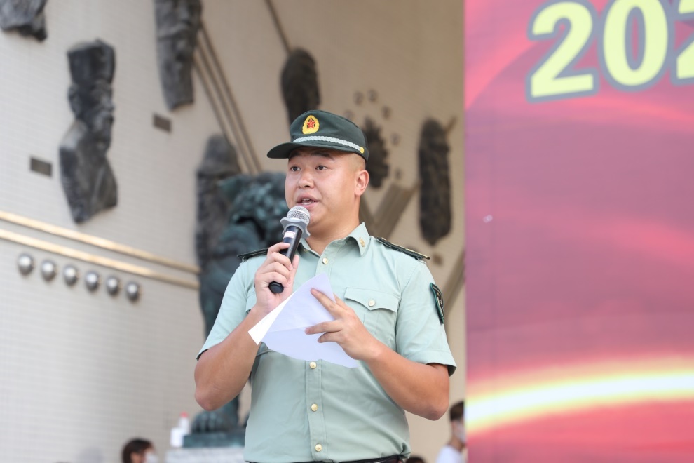 馬俊副校長宣讀《關(guān)于表彰2021年新生軍訓(xùn)先進(jìn)集體和先進(jìn)個人的決定》,并對獲得“軍訓(xùn)先進(jìn)連” “優(yōu)秀教官”“優(yōu)秀軍訓(xùn)生”榮譽的集體和個人表示祝賀。學(xué)校領(lǐng)導(dǎo)分別向受表彰的單位和個人頒發(fā)了錦旗和榮譽證書。