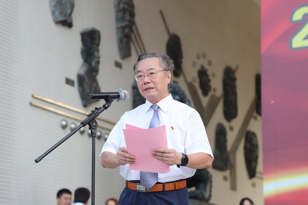 金秋九月,是收獲的季節(jié),也是迎新的季節(jié)!清晨,當(dāng)陽光透過樓宇,灑在綜合樓廣場上,2021級新生匯聚一起,懷著興奮、激動的心情迎接他們大學(xué)生涯的第一個重要時刻——新生開學(xué)典禮暨軍訓(xùn)表彰大會。9月18日上午,廣州華立科技職業(yè)學(xué)院2021級新生開學(xué)典禮暨軍訓(xùn)表彰大會在廣州校區(qū)和云浮校區(qū)同時舉行。學(xué)校執(zhí)行校長馬龍海,黨委書記林偉健,副校長馬俊、高堯來,廣州市增城區(qū)武裝部主任鄧偉健,各職能部門和學(xué)院負(fù)責(zé)人出席廣州校區(qū)的典禮。2021級全體新生參加典禮。典禮由黨委副書記、副校長高堯來主持。