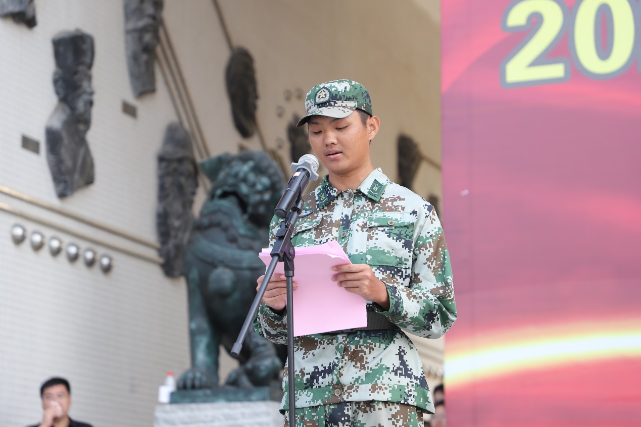 會上,廣州增城區(qū)武裝部鄧偉健主任表示同學(xué)們通過10多天的軍訓(xùn)對軍隊歷史和無私奉獻(xiàn)的精神有一定的了解體會,希望大家繼續(xù)秉承艱苦奮斗,頑強拼搏的精神認(rèn)真學(xué)習(xí),真正成為一名有理想、有道德、有文化、有紀(jì)律的高素質(zhì)復(fù)合型人才。