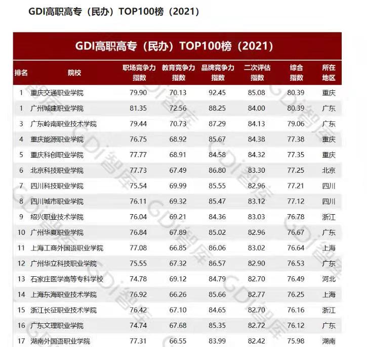 由教務處和科研處聯(lián)合提交的《通識教育視域下民辦高校科-產-教融合育人模式研究》是我校近年來開展的教育科學研究的高質量成果。成績的取得為我校在全省乃至全國提高了聲譽,增強了品牌影響力。我校2020年“創(chuàng)強”考核得分創(chuàng)歷史新高,省教育廳公布“創(chuàng)新強校工程”考核結果顯示,我校2020年“創(chuàng)強”考核得分62.6分,較2019年考核提高近13分,創(chuàng)歷史新高,撥款增加22萬元。廣州日報GDI智庫全國高職高專(民辦)TOP100榜(2021)我校排名第12名,比2020年進步5名。