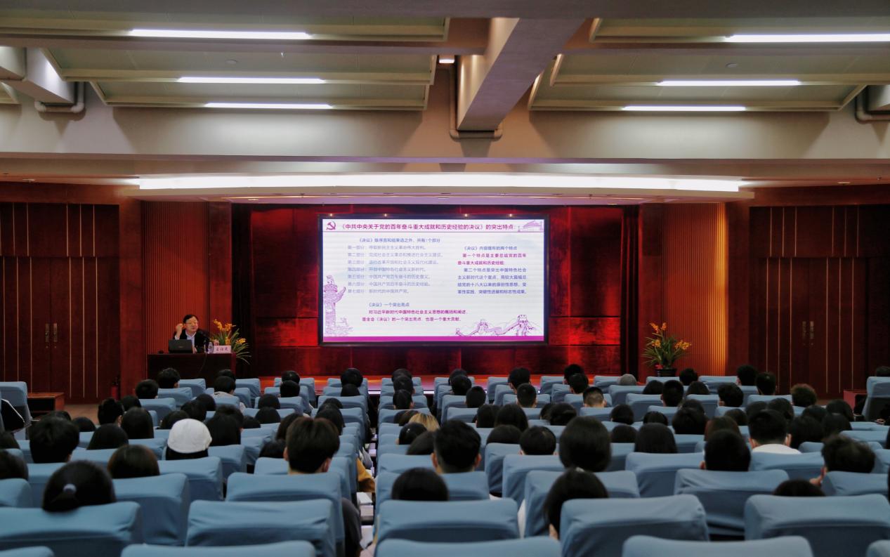 開班儀式后,中山大學博士生導師、我校馬克思主義學院院長王仕民教授為本期入黨積極分子上了第一課,講授了《黨的十九屆六中全會精神解讀》,傳達了黨的十九屆六中全會會議精神,領學了《中共中央關于黨的百年奮斗重大成就和歷史經(jīng)驗的決議》。黨的十九屆六中全會是在我們黨成立一百年之際,黨領導人民實現(xiàn)第一個百年奮斗目標、向著實現(xiàn)第二個百年奮斗目標邁進的重大歷史關頭,召開的一次總結過去、展望未來的歷史性、戰(zhàn)略性重要會議。全會回顧百年奮斗歷程,總結重大歷史經(jīng)驗,具有重大而深遠的意義。