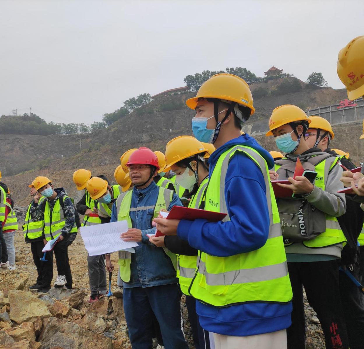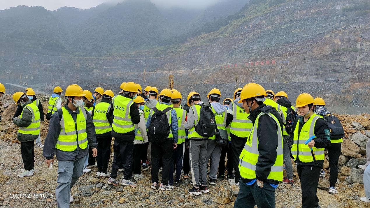 (學生對硫鐵礦露天平臺進行觀察和學習)