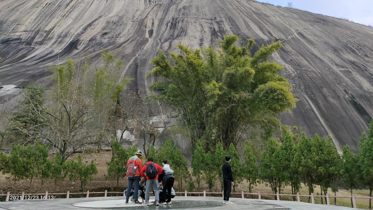 (學生在大斑石對花崗巖地貌進行認知描述)