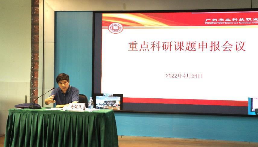 為進(jìn)一步推動我??萍佳芯抗ぷ?,落實(shí)《2021-2022學(xué)年學(xué)校科研工作要點(diǎn)》(華立職院〔2022〕26號)文件精神。2022年4月24日下午,在學(xué)校圖書館104報告廳召開重點(diǎn)科研項(xiàng)目申報動員會議。會議由易健民校長主持,各相關(guān)職能部門負(fù)責(zé)人、二級學(xué)院院長、學(xué)科帶頭人、教學(xué)副主任、系主任、副教授以上教師、博士參會。