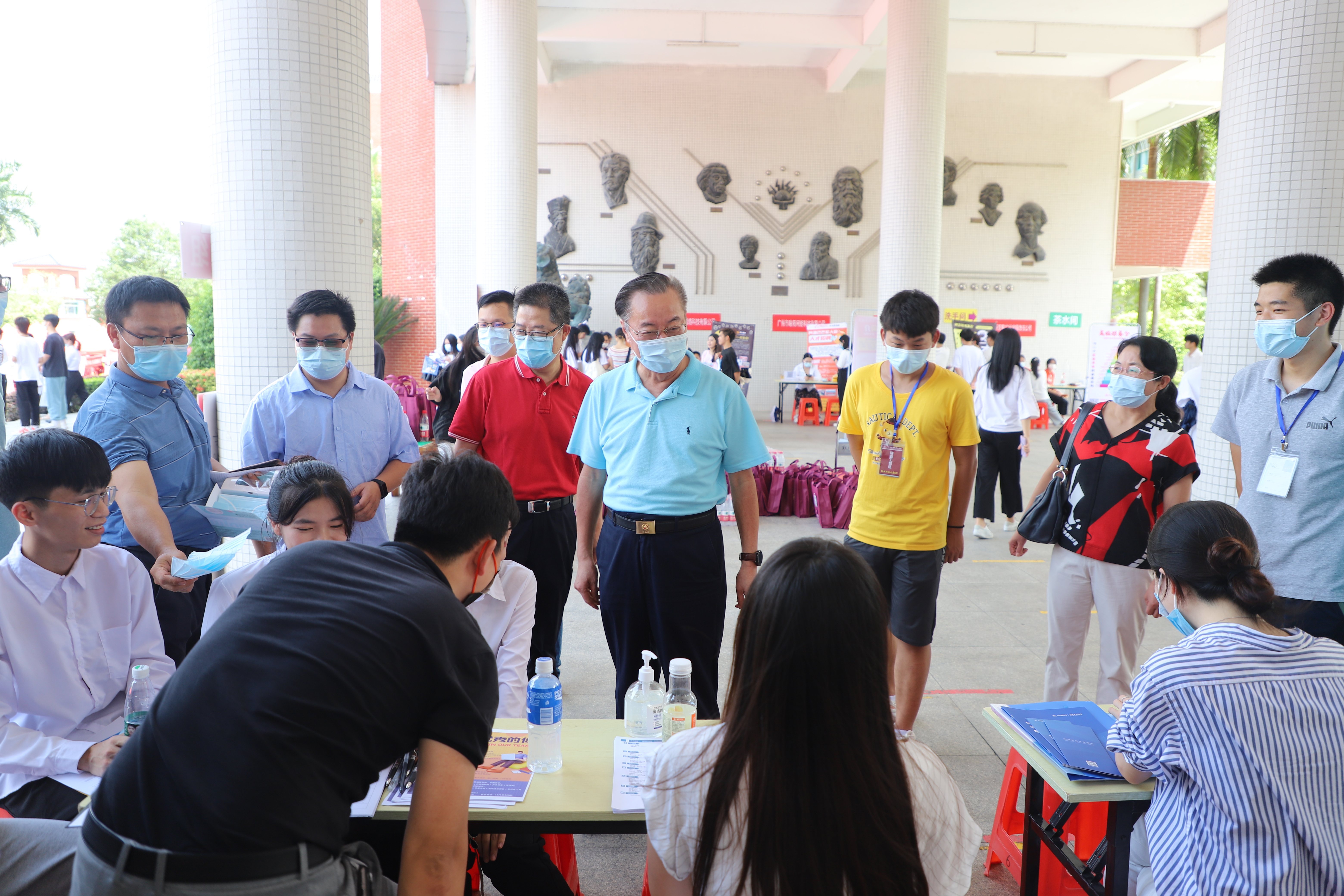 招聘現(xiàn)場,學(xué)校林偉健書記、陳顯強(qiáng)副校長等領(lǐng)導(dǎo)與參會(huì)企業(yè)、應(yīng)聘學(xué)生進(jìn)行深入交流。了解企業(yè)用人需求和招聘標(biāo)準(zhǔn),征求用人企業(yè)對學(xué)校教育教學(xué)的意見和建議。