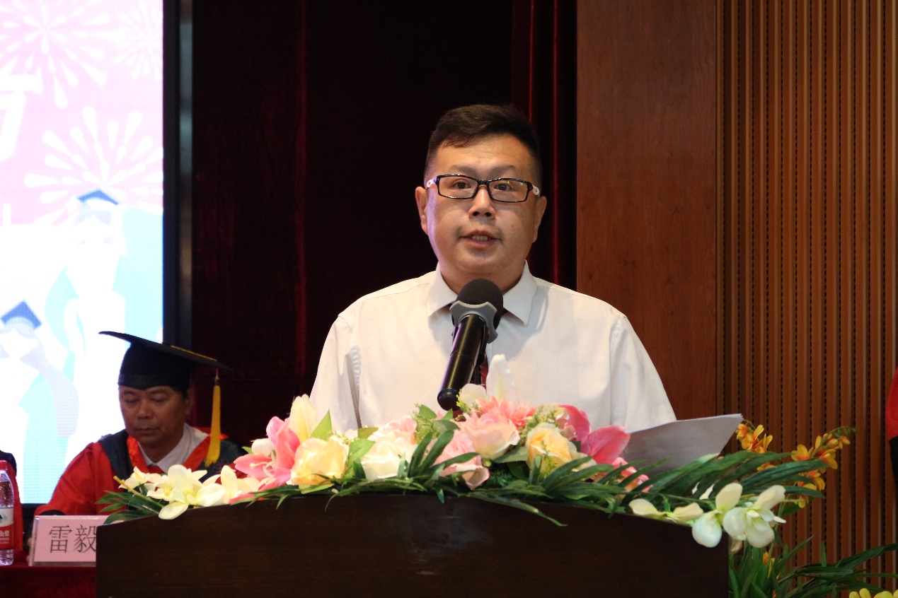 健康學(xué)院張邦奎副教授作為教師代表發(fā)言。他希望同學(xué)們做人要講誠(chéng)信,有毅力,不要怕困難,要樂(lè)觀的看問(wèn)題、處理事情。建立良好的信心,為家庭和社會(huì),恪守自己的本分;他認(rèn)為成人比成才更為重要。希望大家一定要經(jīng)得起考驗(yàn),要相信陽(yáng)光總在風(fēng)雨后。未來(lái)技術(shù)會(huì)更成熟,價(jià)值觀以及物質(zhì)條件會(huì)逐步完善,具有社會(huì)交往能力的會(huì)更加精進(jìn)。希望大家謹(jǐn)記回報(bào)國(guó)家和為社會(huì)做出貢獻(xiàn),認(rèn)真體會(huì)“大國(guó)工匠,技術(shù)強(qiáng)國(guó)”的深刻含義。