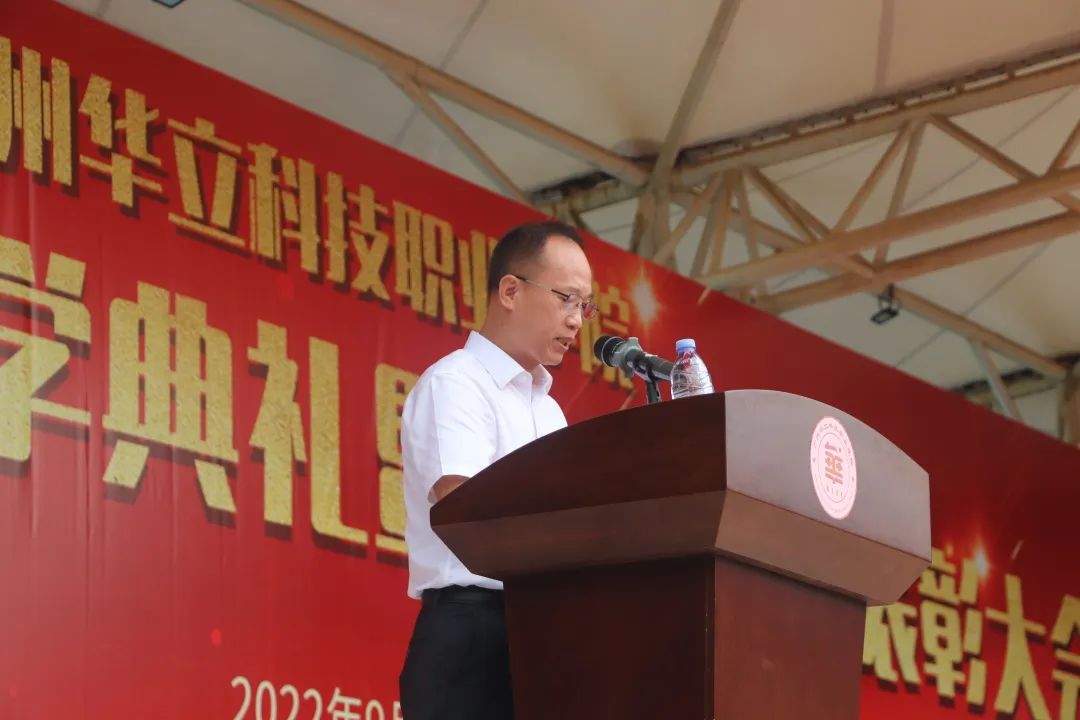 金秋送爽,希望綻放;九月征途,揚帆啟航。清晨,當陽光灑在田徑場上時, 2022級的新生匯聚一起,懷著興奮、激動的心情迎接他們大學生涯的第一個重要時刻——新生開學典禮暨軍訓表彰大會。9月19日、20日上午,廣州華立科技職業(yè)學院舉行2022級新生開學典禮暨軍訓表彰大會。學校校長易健民,黨委書記陳良聲,常務副校長馬俊,副校長陳顯強,校長助理郭仲先、葉春桃,廣州市增城區(qū)人民武裝部軍訓團團長唐華、謝偉超,各職能部門和學院負責人出席了典禮。2022級全體新生參加典禮。廣州校區(qū)典禮由黨委副書記、副校長高堯來主持,云浮校區(qū)典禮由校長助理王洪艷主持。