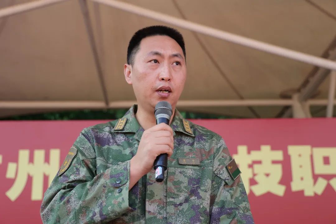 廣州市增城區(qū)人民武裝部軍訓團團長唐華和謝偉超代表發(fā)言。他們在發(fā)言中一致表揚了同學們在軍訓時的優(yōu)異表現(xiàn)。認為同學們提高了思想政治覺悟,激發(fā)出了高漲的愛國熱情和革命英雄主義精神,樹立了國防意識和國家安全意識,增強了集體觀念和組織紀律觀念,培養(yǎng)了艱苦奮斗、吃苦耐勞的優(yōu)良作風。