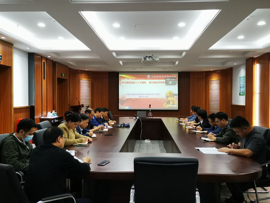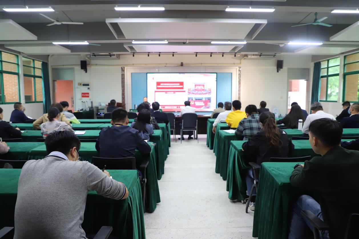 校長易健民,黨務(wù)副校長馬俊,副校長陳顯強(qiáng),黨委副書記高堯來,校長助理葉春桃以及各部門主要負(fù)責(zé)人,二級學(xué)院黨組織負(fù)責(zé)人參加了會議。學(xué)校黨委副書記王洪艷,校長助理郭仲先和云浮校區(qū)黨務(wù)干部及各部門負(fù)責(zé)人,通過視頻連線參加了學(xué)習(xí)。