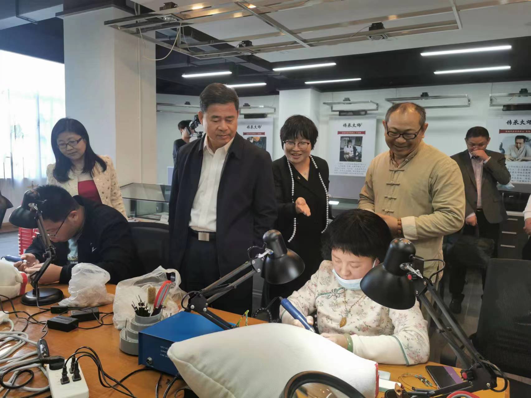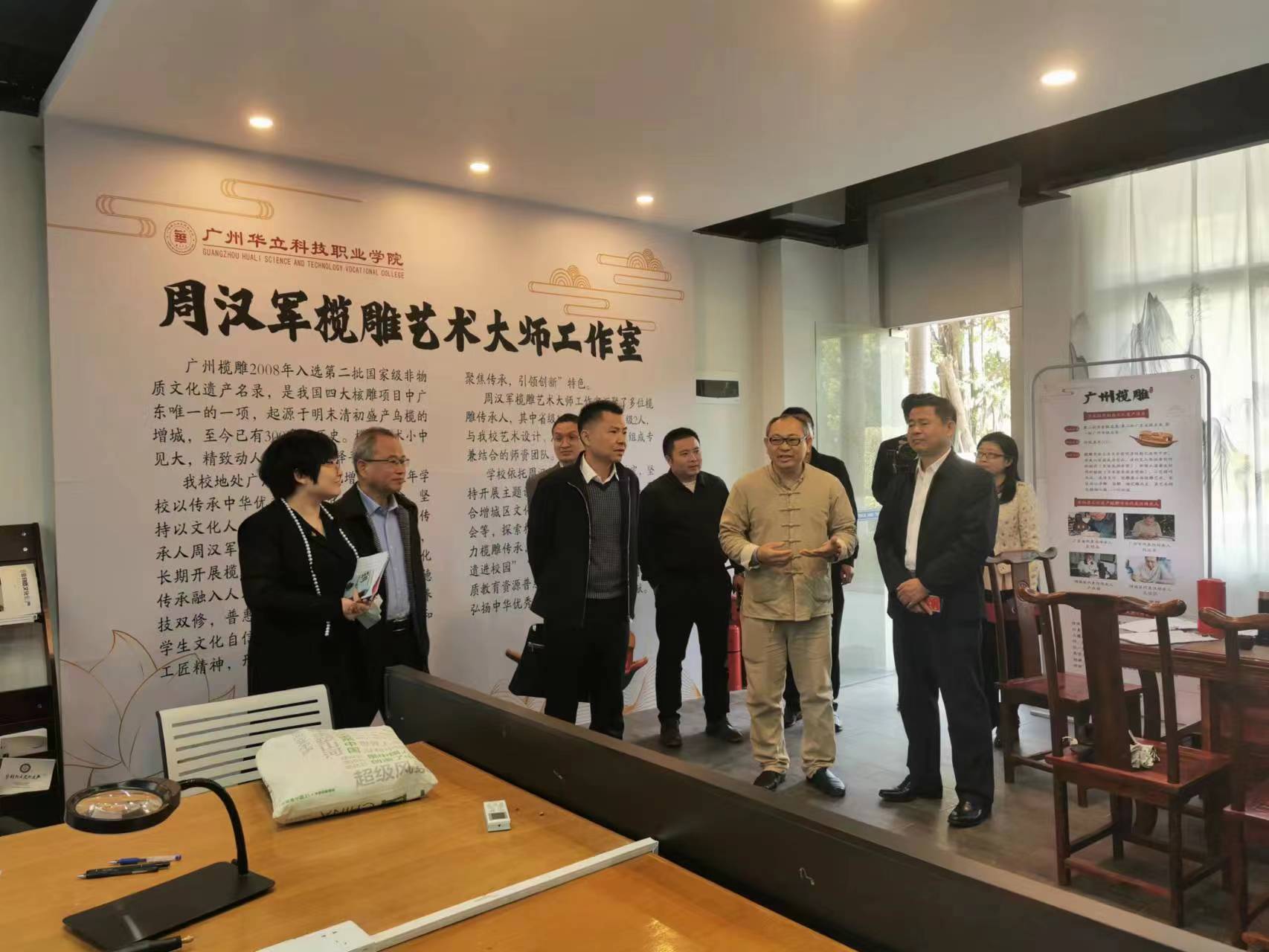 調(diào)研組成員會后參觀了學校就業(yè)創(chuàng)業(yè)辦公場地、武裝部、征兵工作站、周漢軍欖雕藝術大師工作室等場地,與學校師生進行近距離交流。