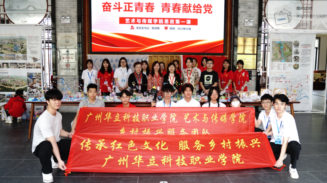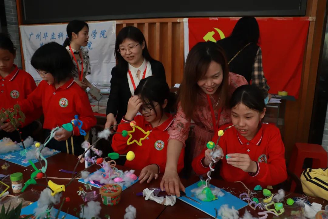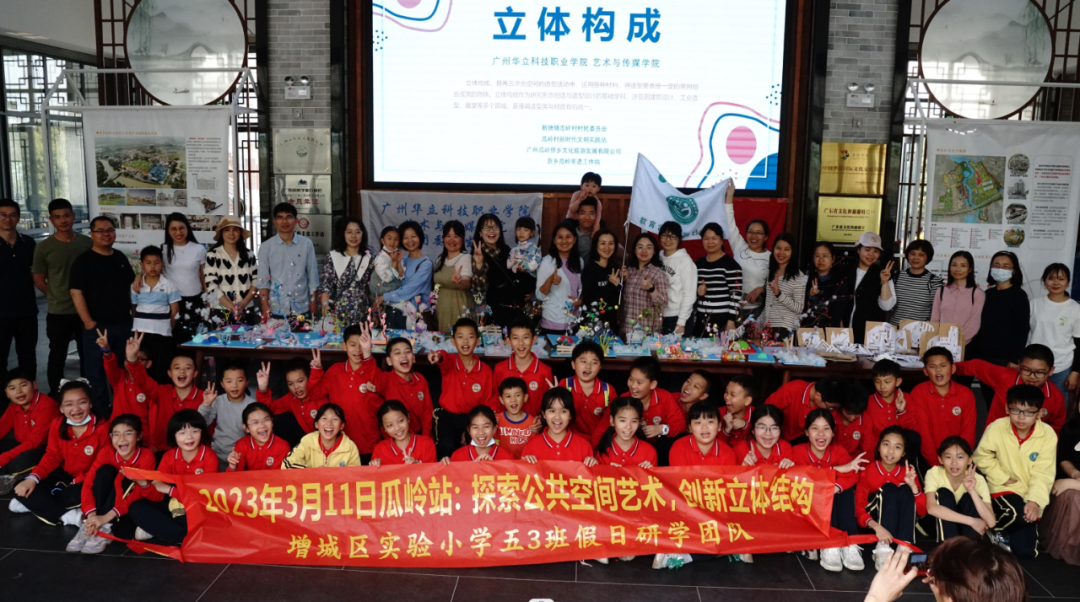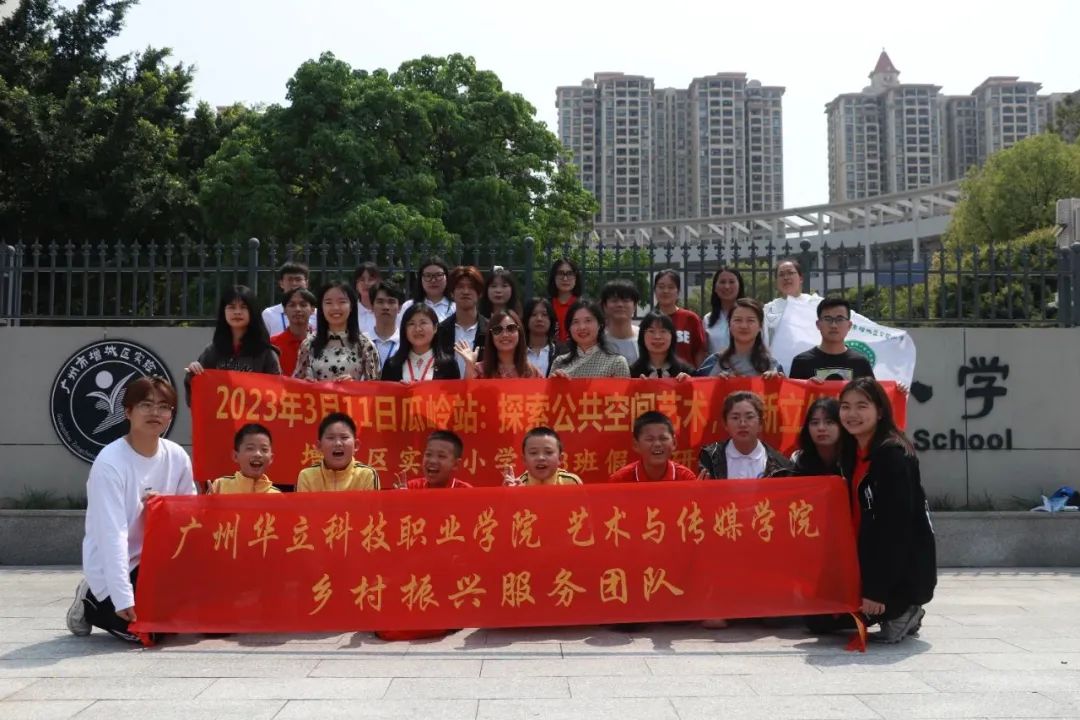 廣州華立科技職業(yè)學院藝術(shù)與傳媒學院鄉(xiāng)村振興團隊在試驗小學與研學代表留念