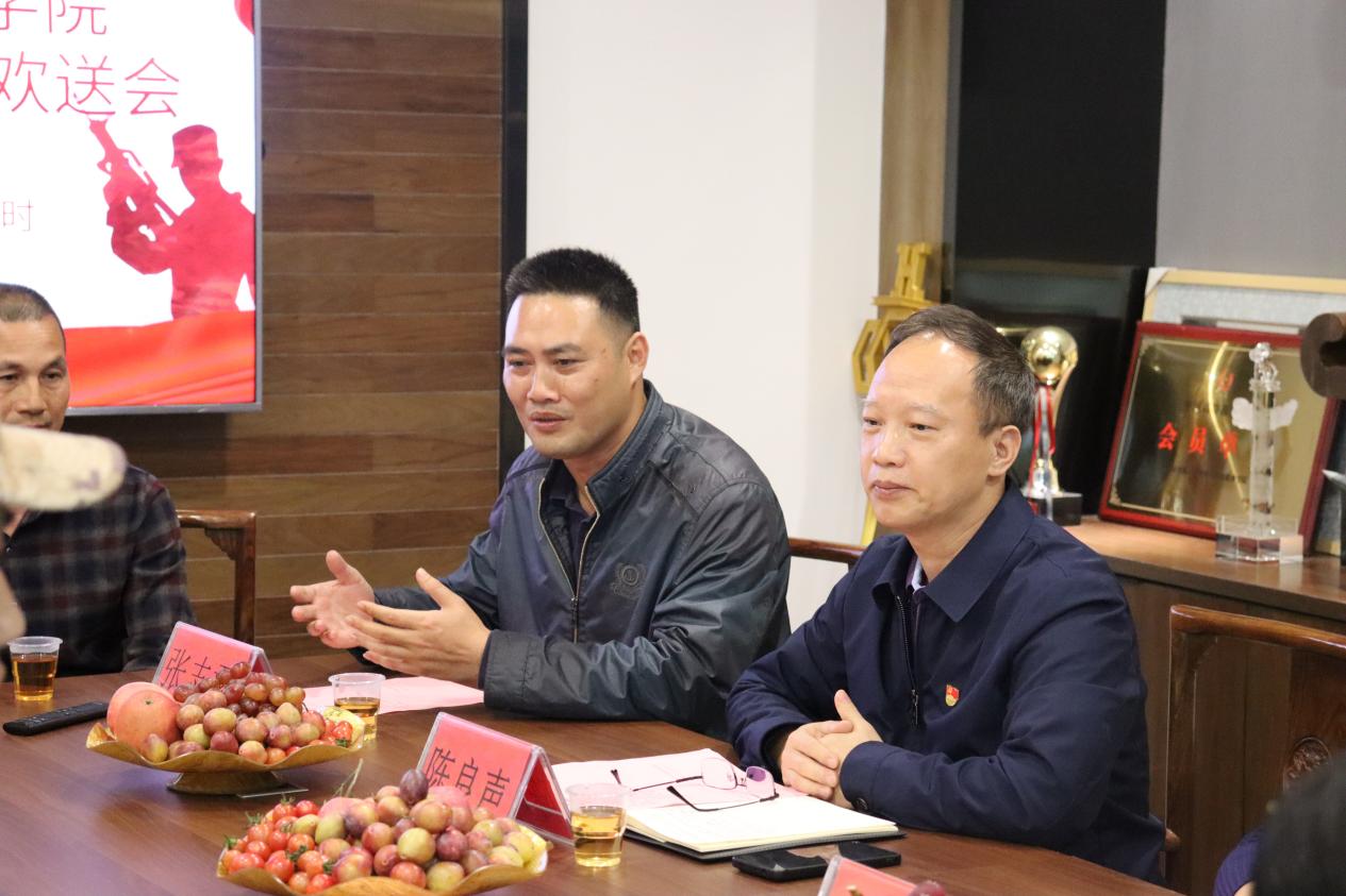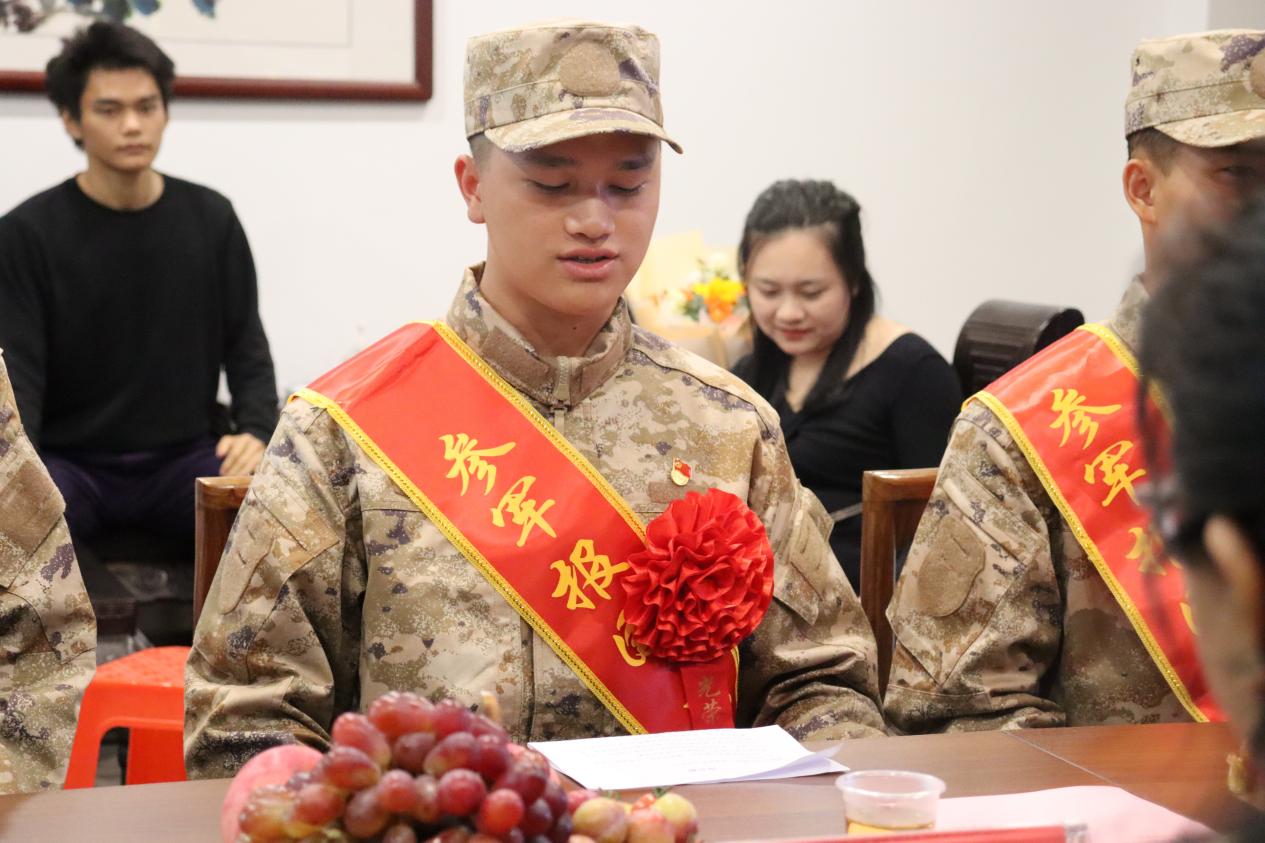 新兵入伍歡送會(huì)在行政樓3樓會(huì)議室召開,4名新兵身著戎裝,頭戴軍帽,胸佩大紅花和彩帶,神采飛揚(yáng)、意氣風(fēng)發(fā)。會(huì)議共六項(xiàng)議程,首先由新兵代表林浩作了振奮人心的發(fā)言,他表示有這個(gè)特別的機(jī)會(huì)去學(xué)習(xí)鍛煉和報(bào)效祖國感到無比光榮,將會(huì)在部隊(duì)努力學(xué)習(xí),不怕吃苦,堅(jiān)決服從命令,聽從指揮,刻苦訓(xùn)練,勤學(xué)本領(lǐng),做到政治合格、軍事過硬、作風(fēng)優(yōu)良、紀(jì)律嚴(yán)明、保障有力、精忠報(bào)國,為國家的和平與安寧扛好槍、站好崗,表達(dá)了自己保家衛(wèi)國的堅(jiān)定決心。第二第三項(xiàng)議程是分別是新兵家長(zhǎng)和輔導(dǎo)員發(fā)表講話,希望即將入伍的4名新兵牢記初心,用汗水磨練意志,用熱血鑄就軍魂,扎根軍營建功立業(yè),成就精彩人生,為家鄉(xiāng)增光添彩。