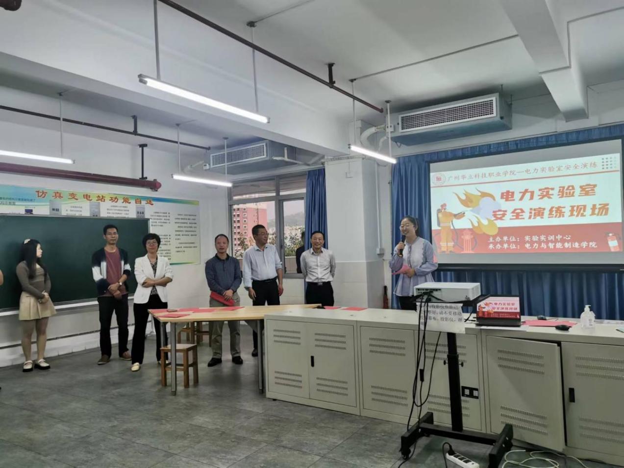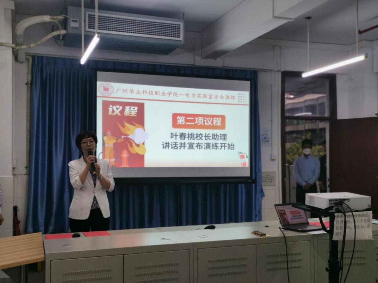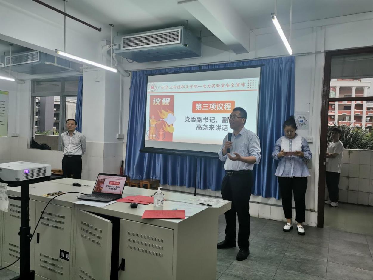 為貫徹“預(yù)防為主,防消結(jié)合”的方針,落實(shí)學(xué)校安全工作會(huì)議精神,切實(shí)提高師生實(shí)驗(yàn)室安全意識(shí),增強(qiáng)實(shí)驗(yàn)室安全防范能力和處置突發(fā)事件的能力。3月24日上午,我校實(shí)訓(xùn)中心、電力與智能制造學(xué)院、保衛(wèi)處在學(xué)校綜合樓508開展了一次全過程、多部門聯(lián)動(dòng)的電力實(shí)驗(yàn)室安全演練。學(xué)校黨委書記陳良聲、副校長高堯來、校長助理葉春桃、實(shí)訓(xùn)中心主任張磊、保衛(wèi)處處長陳勝軍、電力與智能制造學(xué)院院長王秀敏、實(shí)訓(xùn)中心和保衛(wèi)處老師、學(xué)生代表等參加了本次演練。