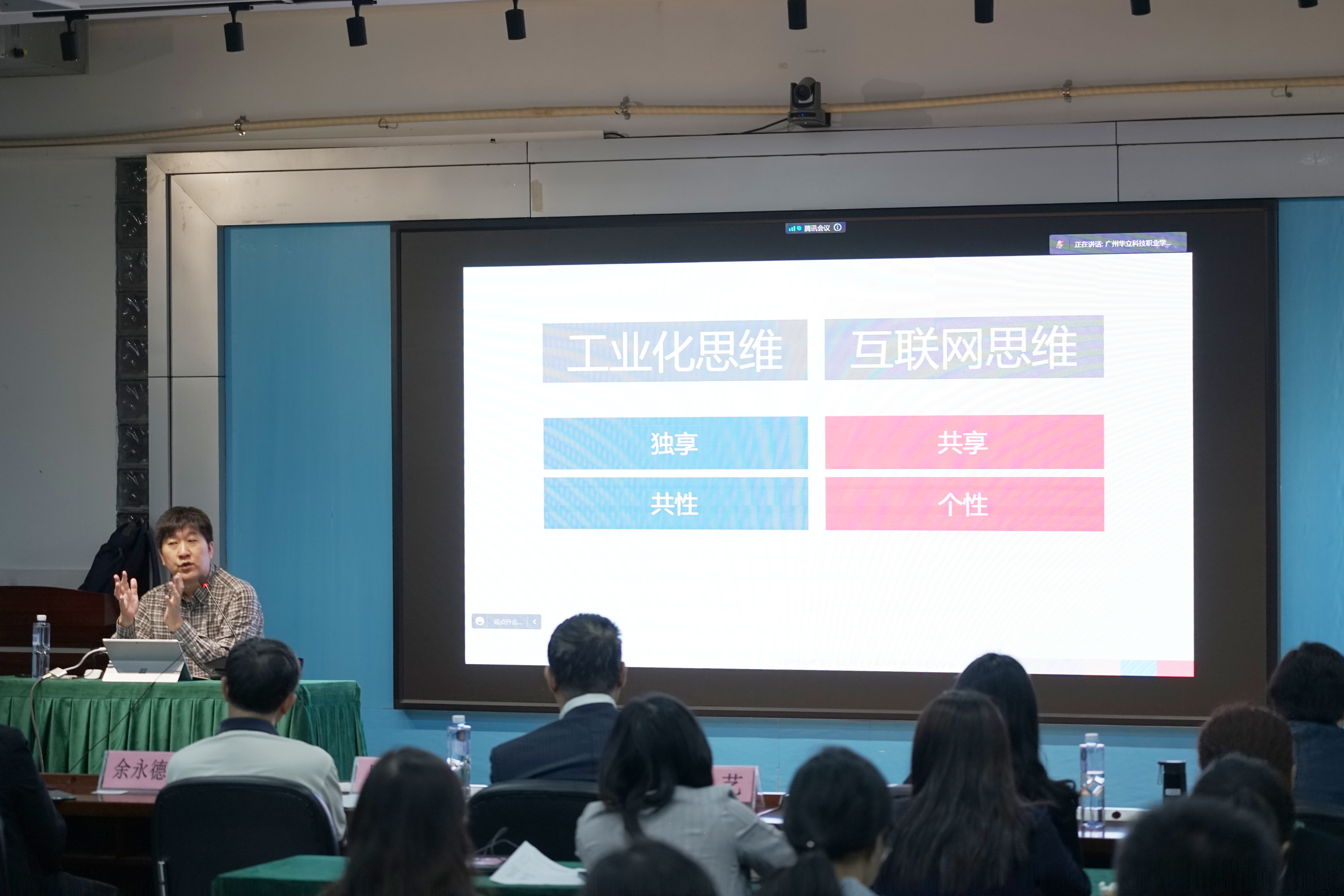 講座期間,付曉光教授和學校教師們互動討論,深入淺出地解答大家提出的問題,不僅讓與會聽眾在知識層面受益匪淺,更激發(fā)了教師對互聯(lián)網(wǎng)思維和新媒體教學的深度思考。