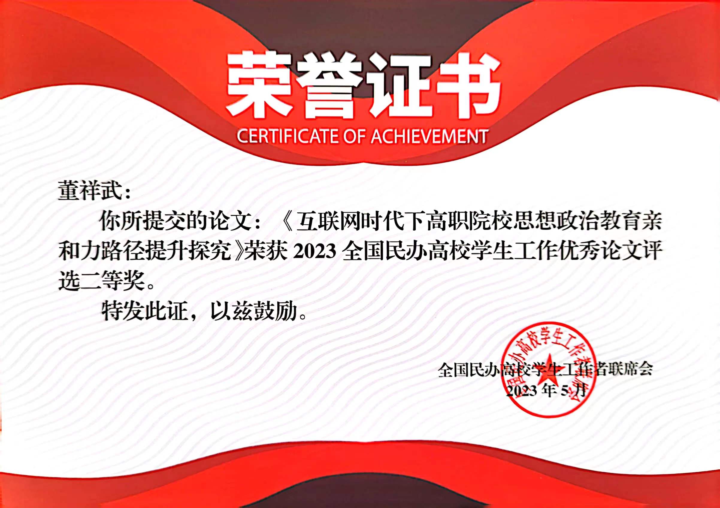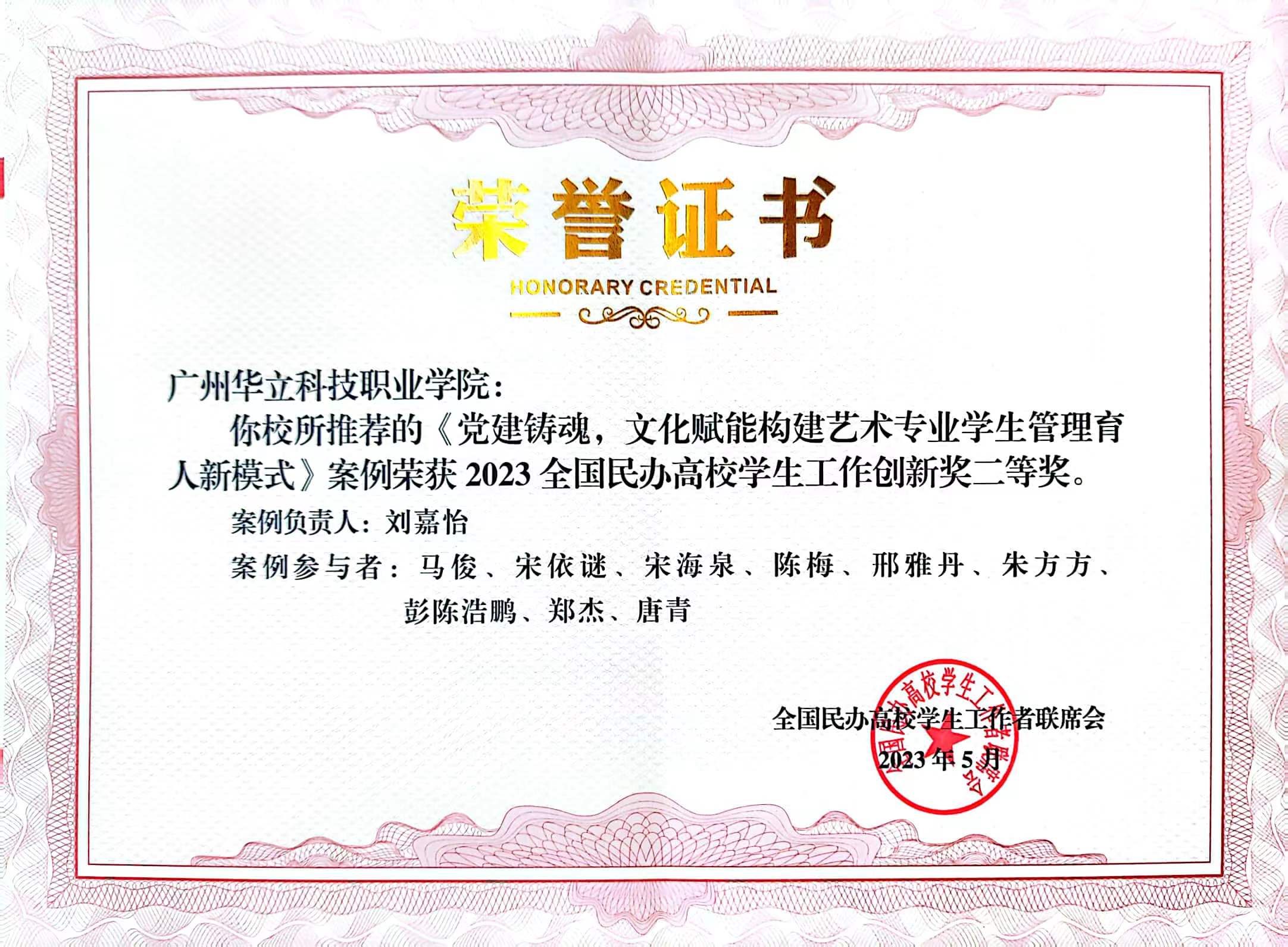 在本屆研討會(huì)中,我校學(xué)工團(tuán)隊(duì)研究成果豐碩,獲得多項(xiàng)榮譽(yù),其中藝術(shù)與傳媒學(xué)院學(xué)管負(fù)責(zé)人劉嘉怡老師主持的案例《黨建鑄魂,文化賦能構(gòu)建藝術(shù)專業(yè)學(xué)生管理育人新模式》榮獲2023全國民辦高校學(xué)生工作創(chuàng)新獎(jiǎng)二等獎(jiǎng)。董祥武老師的創(chuàng)新論文《互聯(lián)網(wǎng)時(shí)代下高職院校思想政治教育親和力路徑提升探究》榮獲2023全國民辦高校學(xué)生工作優(yōu)秀論文評(píng)選二等獎(jiǎng)。黨委學(xué)生工作部部長宋海泉老師主持的《民辦高校公寓(社區(qū))管理改革》案例、曹廣福老師主持的《基于網(wǎng)絡(luò)化治理的高校宿舍管理模式構(gòu)建》案例分別榮獲2022全國民辦高校學(xué)生工作組織改革三等獎(jiǎng)和二等獎(jiǎng)。