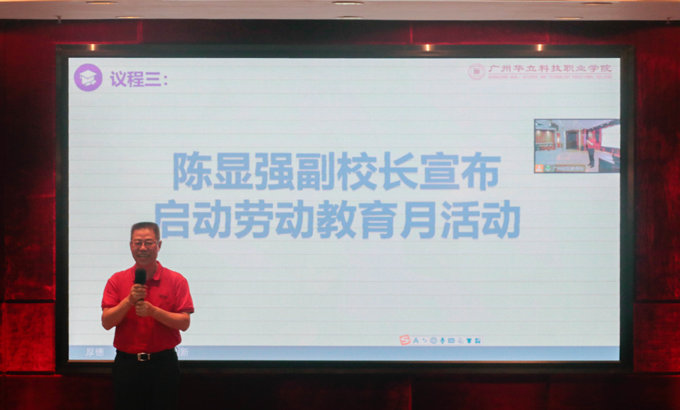 啟動儀式由教務(wù)處吳青峰處長主持,副校長陳顯強(qiáng)、廣州校區(qū)、云浮校區(qū)各部門負(fù)責(zé)人參加了大學(xué)生勞動教育月啟動儀式。