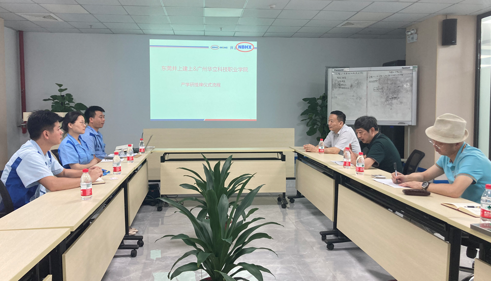 2023年5月18日,廣州華立科技職業(yè)學(xué)院易健民校長、科研處徐中海副處長、電力與智能制造學(xué)院王秀敏院長、楊軍副主任等一行人,前往東莞井上建上汽車部件有限公司舉行了產(chǎn)學(xué)研合作基地授牌儀式。東莞井上建上汽車部件有限公司黃敬寧副總經(jīng)理、人事部李曉明經(jīng)理、開發(fā)部陳海蘇經(jīng)理、生產(chǎn)部李向輝工程師對易校長一行人的到來表示熱烈歡迎。