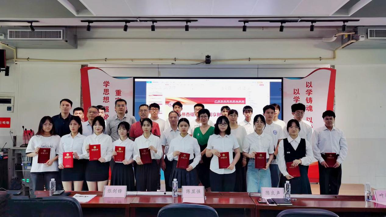云浮校區(qū)獲獎同學(xué)與頒獎領(lǐng)導(dǎo)合影