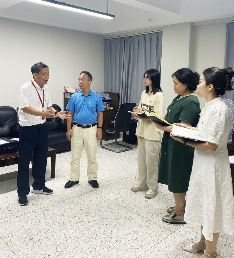 羅紀(jì)旋組長再次強調(diào)要準(zhǔn)確把握主題教育的根本任務(wù),練好調(diào)查研究這一基本功,要對標(biāo)對表,按要求落實好主題教育暑期工作,要求真務(wù)實、狠抓落實,切實推動學(xué)校高質(zhì)量發(fā)展。
