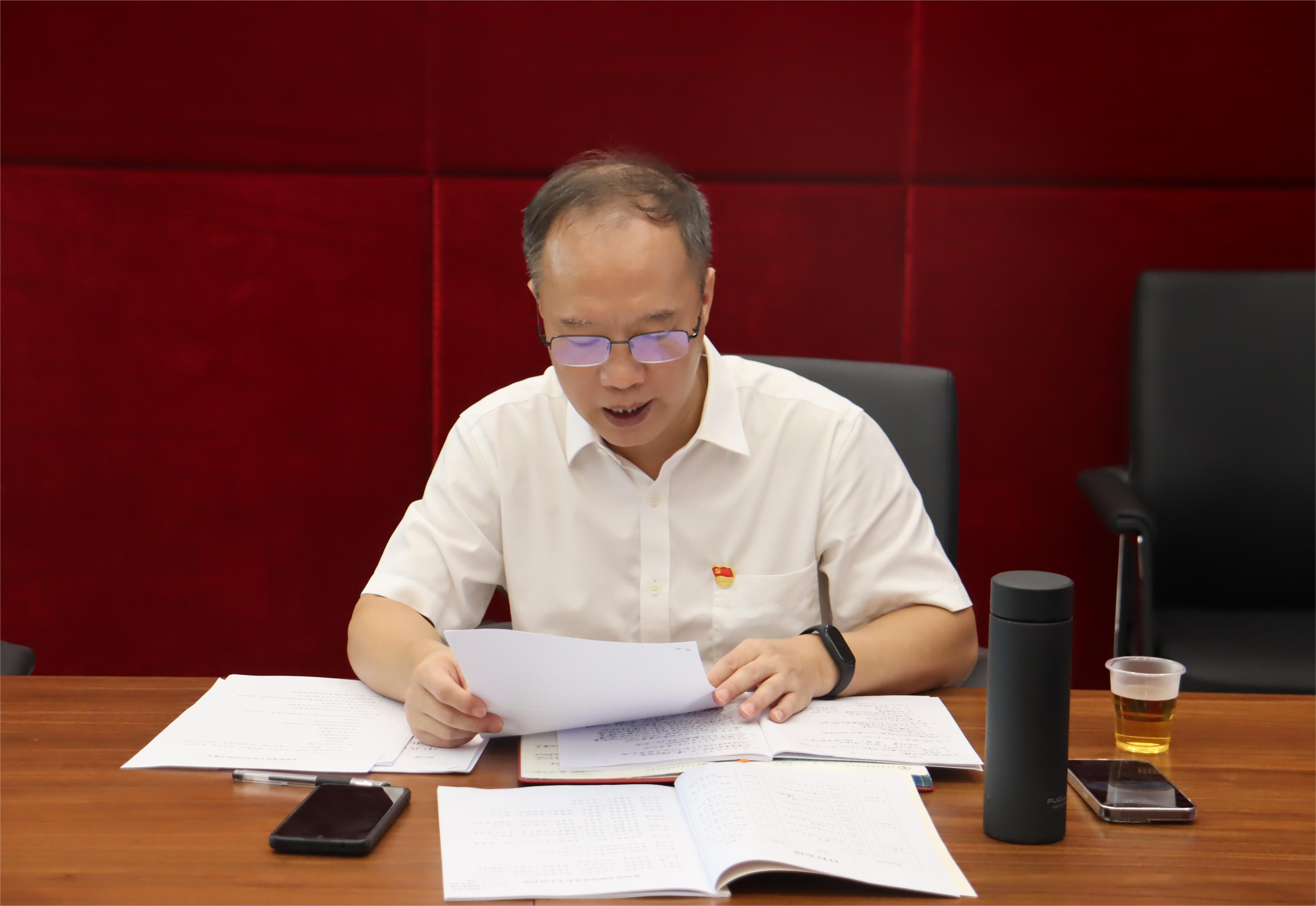 8月22日,學(xué)校黨委理論學(xué)習(xí)中心組在行政樓305會(huì)議室舉行專(zhuān)題學(xué)習(xí)會(huì),認(rèn)真學(xué)習(xí)領(lǐng)會(huì)習(xí)近平總書(shū)記關(guān)于黨的建設(shè)的重要思想,學(xué)習(xí)習(xí)近平總書(shū)記關(guān)于嚴(yán)肅黨內(nèi)政治生活的重要講話和重要指示批示精神,學(xué)習(xí)習(xí)近平總書(shū)記關(guān)于以學(xué)鑄魂、以學(xué)增智、以學(xué)正風(fēng)、以學(xué)促干的重要論述,學(xué)習(xí)習(xí)近平總書(shū)記關(guān)于建設(shè)教育強(qiáng)國(guó)的重要講話精神,進(jìn)一步統(tǒng)一思想、深化認(rèn)識(shí),為高質(zhì)量高標(biāo)準(zhǔn)開(kāi)好專(zhuān)題民主生活會(huì)打牢思想基礎(chǔ)。學(xué)校黨委書(shū)記陳良聲主持并領(lǐng)學(xué)。黨委副書(shū)記、副校長(zhǎng)高堯來(lái),黨委委員曾祥彪作研討發(fā)言。學(xué)校領(lǐng)導(dǎo),黨委委員,黨委宣傳部、黨委辦公室、學(xué)校辦公室、紀(jì)委辦公室負(fù)責(zé)人等以線上線下相結(jié)合的形式參會(huì)。