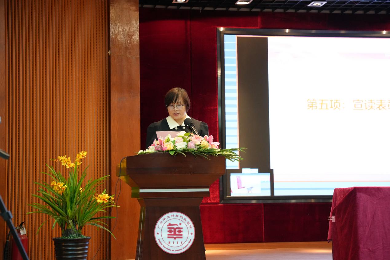 優(yōu)秀教育工作者代表李艷華老師在發(fā)言中感謝學(xué)校領(lǐng)導(dǎo)肯定和鼓勵(lì);感謝兄弟部門的支持以及評(píng)建辦各位同事的精誠合作。她指出,我校2023年創(chuàng)強(qiáng)考核取得歷史性重大突破,高居同類院校排名第一!同時(shí),在學(xué)校領(lǐng)導(dǎo)的高度重視和全體師生的共同努力下,學(xué)校成功獲批廣東省高校中華優(yōu)秀傳統(tǒng)文化傳承基地,打造了華立職院“文化傳承”的亮麗名片??偨Y(jié)點(diǎn)滴進(jìn)步和成績(jī),李老師感慨:作為一名教育工作者,重要的是擁有一顆恭敬之心,即對(duì)黨的教育事業(yè)的恭敬,對(duì)自身崗位的恭敬,對(duì)每一項(xiàng)任務(wù)和每一件事情的恭敬。有了敬業(yè)敬事之心,就不敢懈怠,時(shí)時(shí)不忘提醒自己努力努力再努力,踏踏實(shí)實(shí)工作,日新又新,不斷超越自己。
