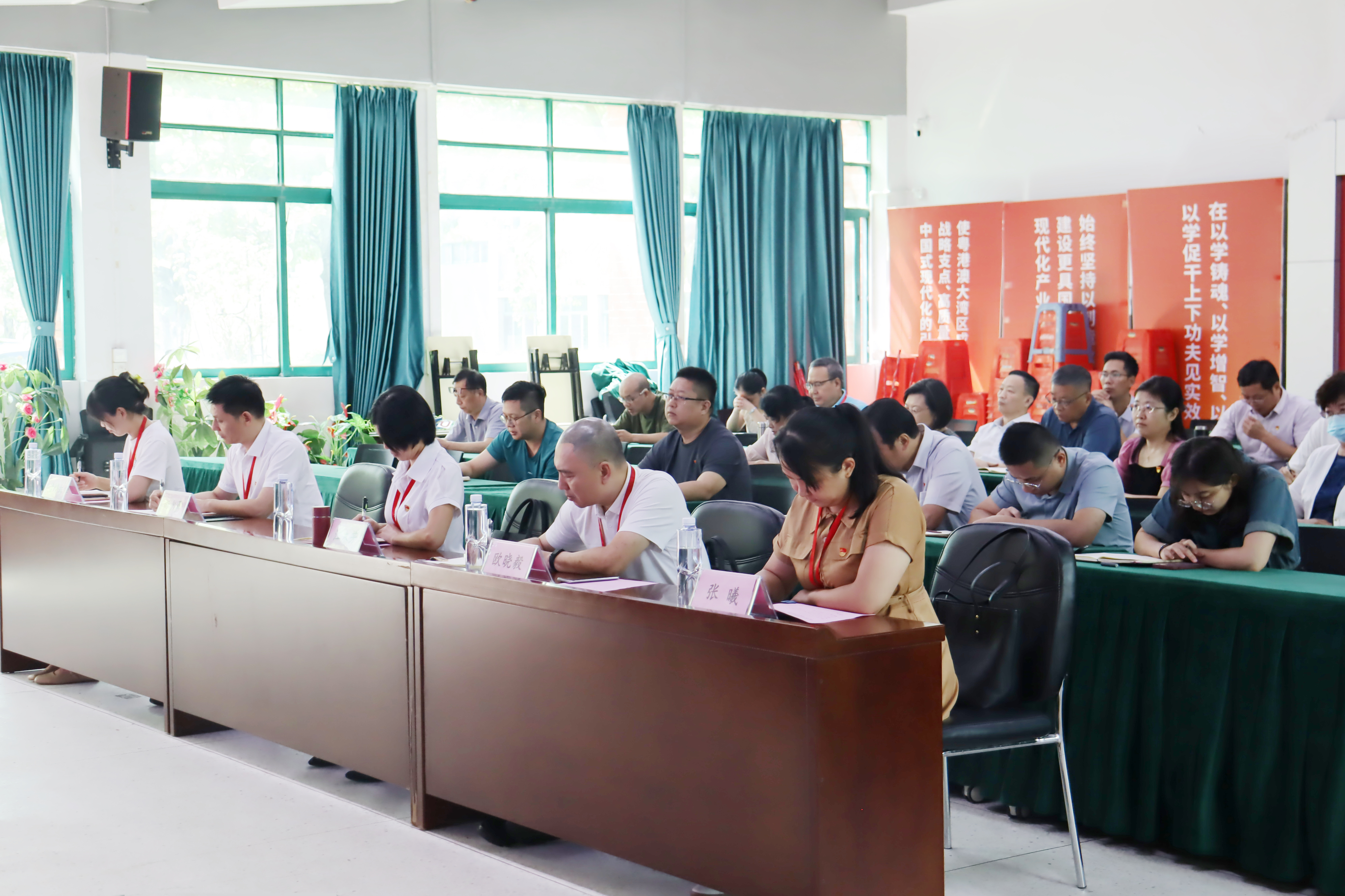 第八巡回指導(dǎo)組副組長江木芳,組員歐曉毅、謝少勇、張曦、黃婷紅出席會(huì)議。學(xué)校領(lǐng)導(dǎo)、主題教育領(lǐng)導(dǎo)小組成員、各職能部門主要負(fù)責(zé)人和二級(jí)學(xué)院黨政負(fù)責(zé)人列席會(huì)議,云浮校區(qū)通過視頻連線參加會(huì)議。