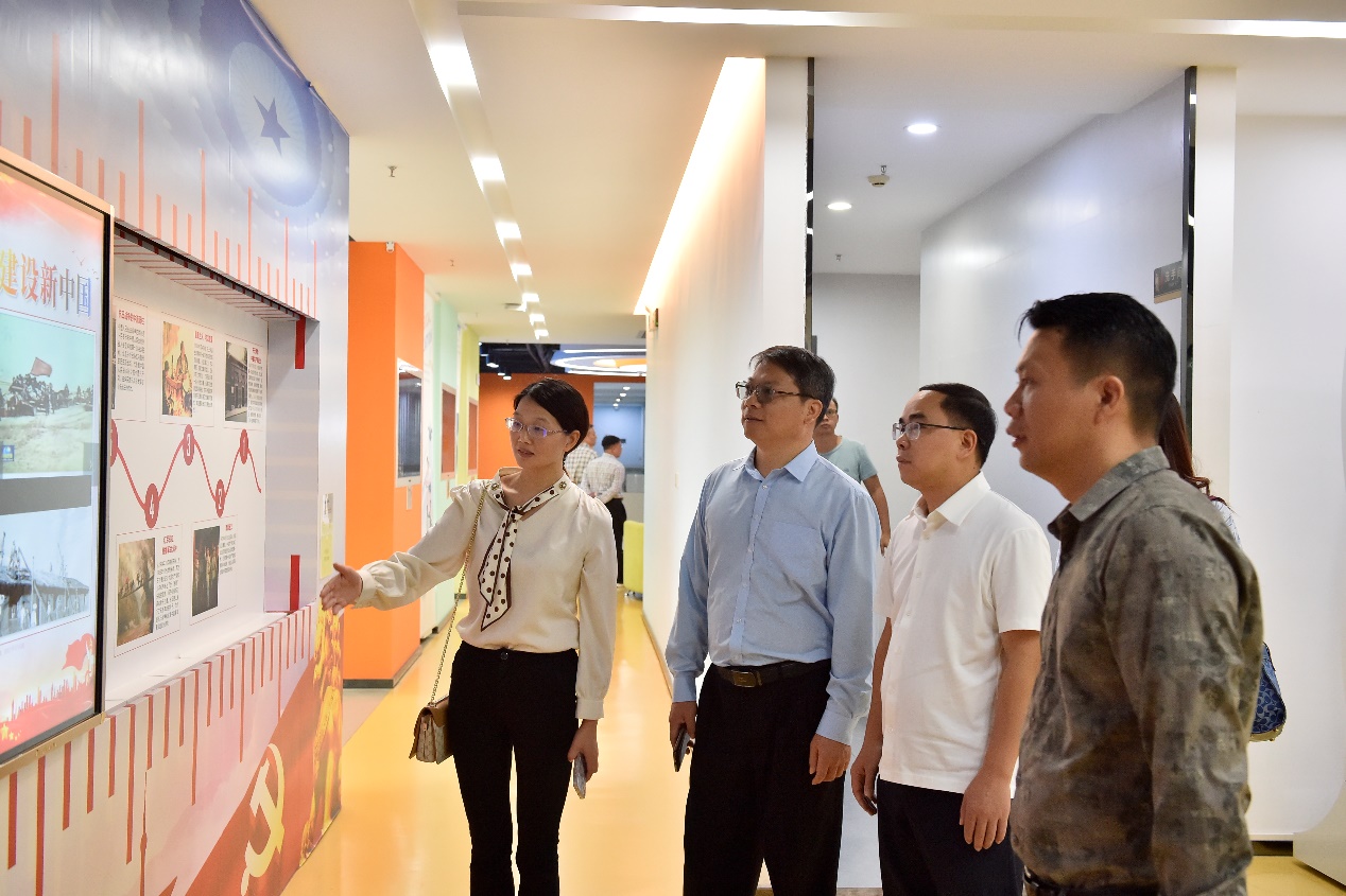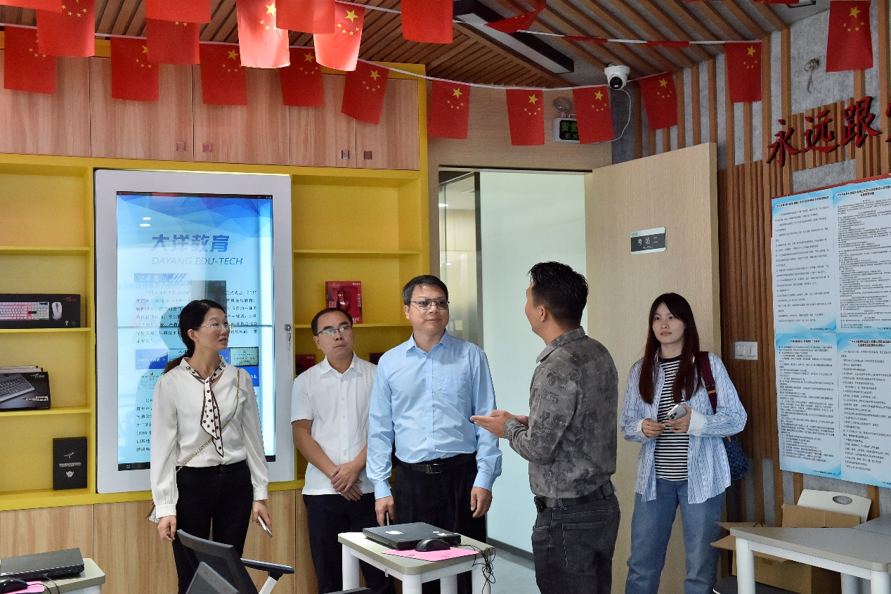 大洋教育陳小龍經(jīng)理帶隊參觀并介紹大洋教育公司的“酷?!碑a(chǎn)教融合云平臺、數(shù)字貿(mào)易港產(chǎn)教融合基地、鄉(xiāng)村振興實戰(zhàn)成果等。