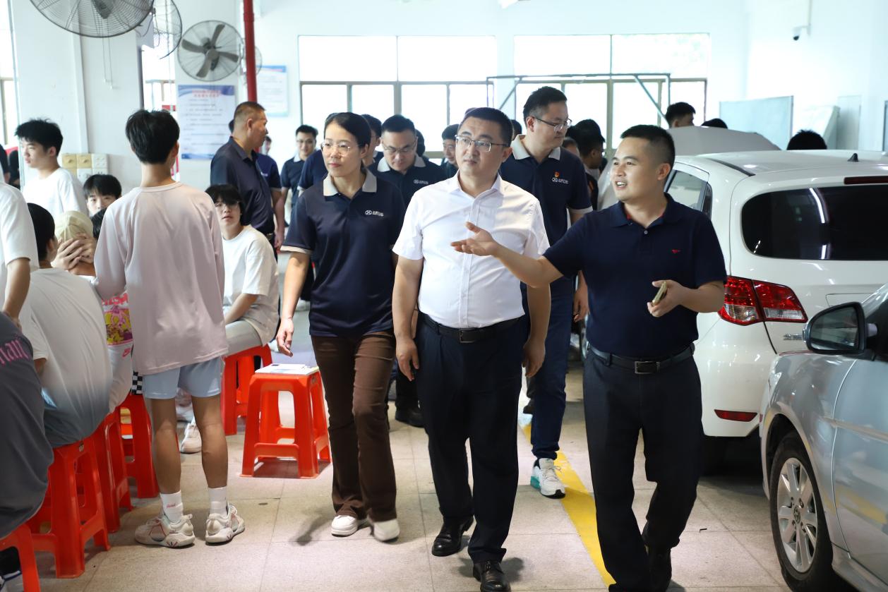 會前,北汽(廣州)汽車有限公司黨委書記、總經(jīng)理朱百慶一行人在校長易健民、黨委書記陳良聲、校長助理葉春桃的陪同下參觀了電商直播間、電力與工業(yè)自動化公共實訓(xùn)中心、汽車(新能源汽車)綜合實訓(xùn)中心。