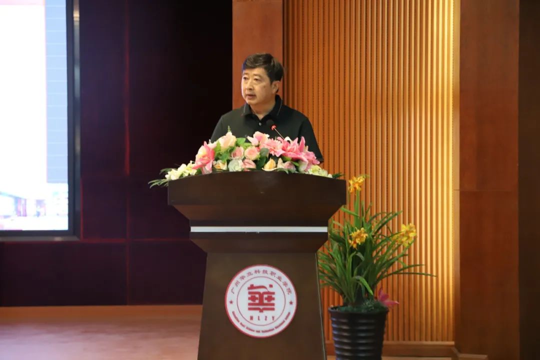 張焜教授緊扣習(xí)近平總書記關(guān)于職業(yè)教育工作的重要指示和全國職業(yè)教育大會精神,對新時(shí)代職業(yè)教育高質(zhì)量發(fā)展的內(nèi)涵和路徑提出思考,對廣東省職業(yè)技術(shù)教育發(fā)展的定位和目標(biāo)闡述了作為學(xué)者的獨(dú)到見解和精辟卓識。張教授首先介紹了職業(yè)教育和普通教育的區(qū)別和特點(diǎn),著重講解了職業(yè)教育的內(nèi)涵、外延,用“五個(gè)堅(jiān)定不移”詮釋了新時(shí)代職業(yè)教育的特色以及職業(yè)教育未來改革和創(chuàng)新的方向。接著,張教授就如何實(shí)現(xiàn)新時(shí)代職業(yè)教育高質(zhì)量發(fā)展提出了五點(diǎn)建議,強(qiáng)調(diào)職業(yè)教育發(fā)展要鍛造“金專、金課、金師、金地、金教材”。最后,張教授根據(jù)廣州華立職業(yè)學(xué)院的特點(diǎn)提出了建設(shè)性的意見,引人深思,在場的領(lǐng)導(dǎo)和教職工受益匪淺。